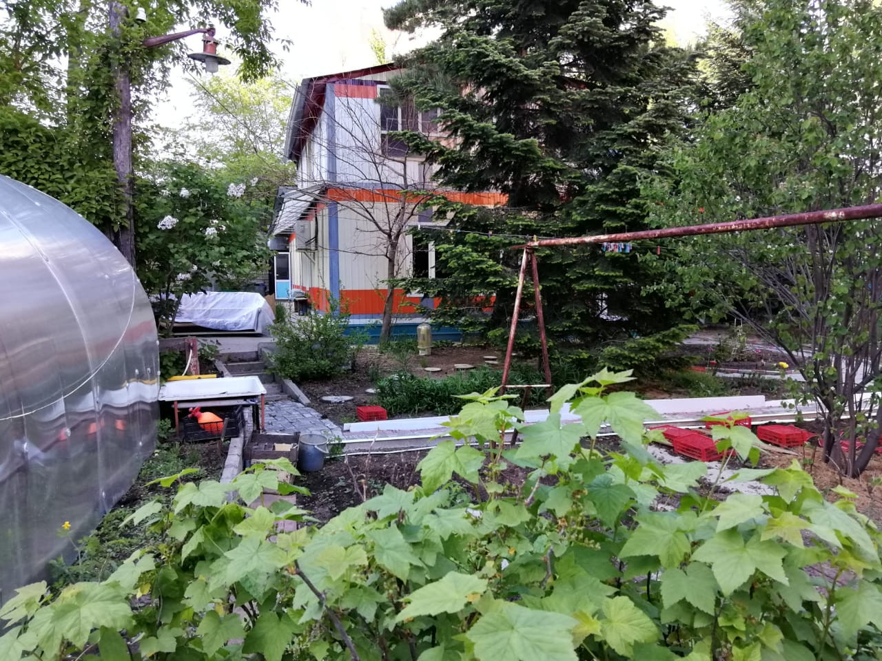 Большой земельный участок 20 соток. Участок разработан.Есть насаждения. Имеется сарай, гараж,  летняя кухня, теплица.