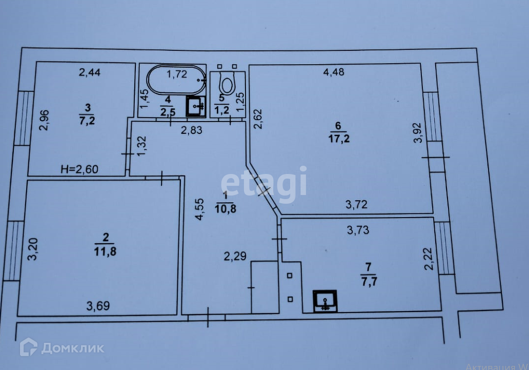Общая площадь 61.6 м2