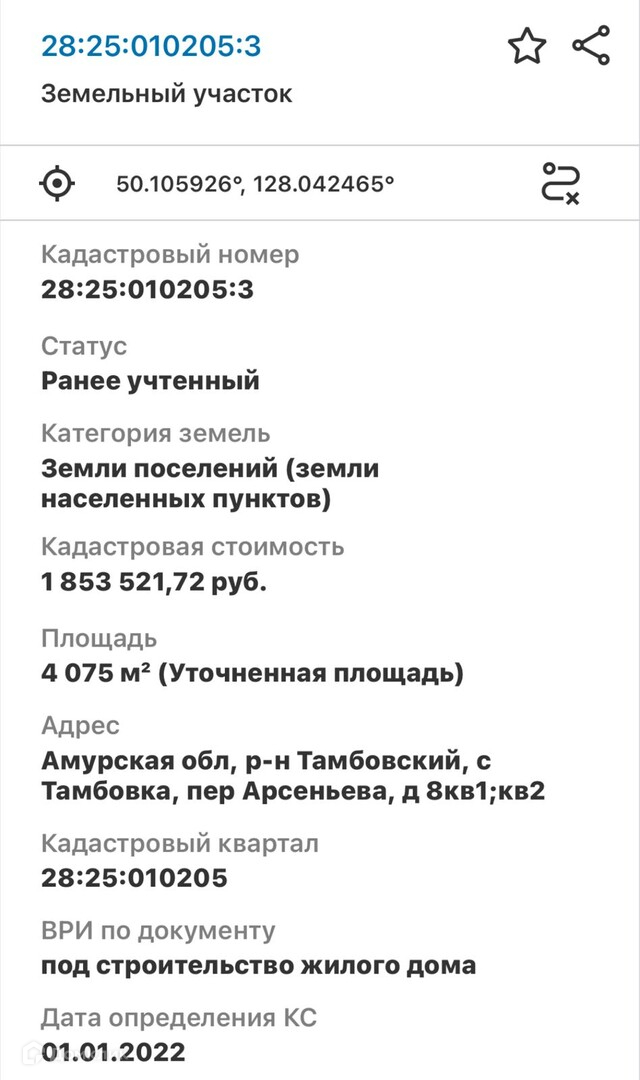 Участок под ИЖС, 40.75 сот. на продажу в селе Тамбовка, переулок Арсеньева, 6