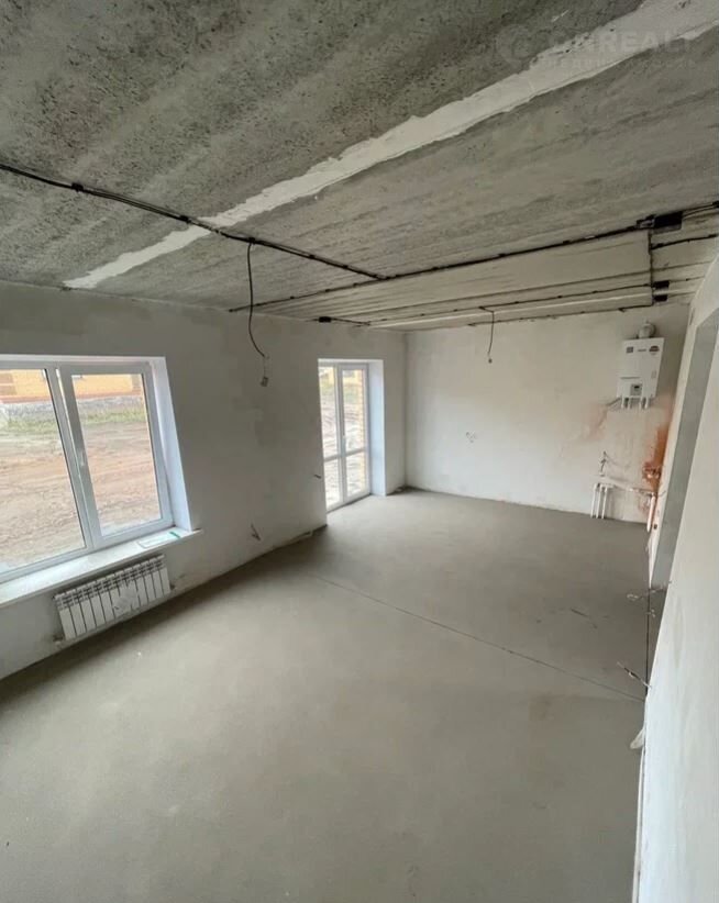 Дом продается в предчистовой отделке: гипсовая штукатурка, полусухая стяжка пола, разводка электрики по всему дому, «теплый пол» по всему этажу, пластиковые откосы и подоконники, радиаторы отопления под каждым окном, двухконтурный газовый котел.