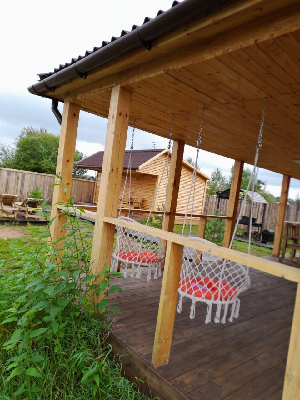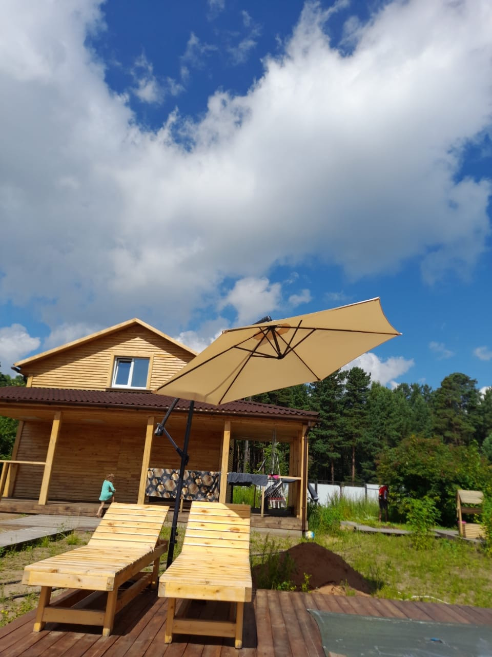 Во дворе-углубление под бассейн, баня, детская площадка, дровяник.