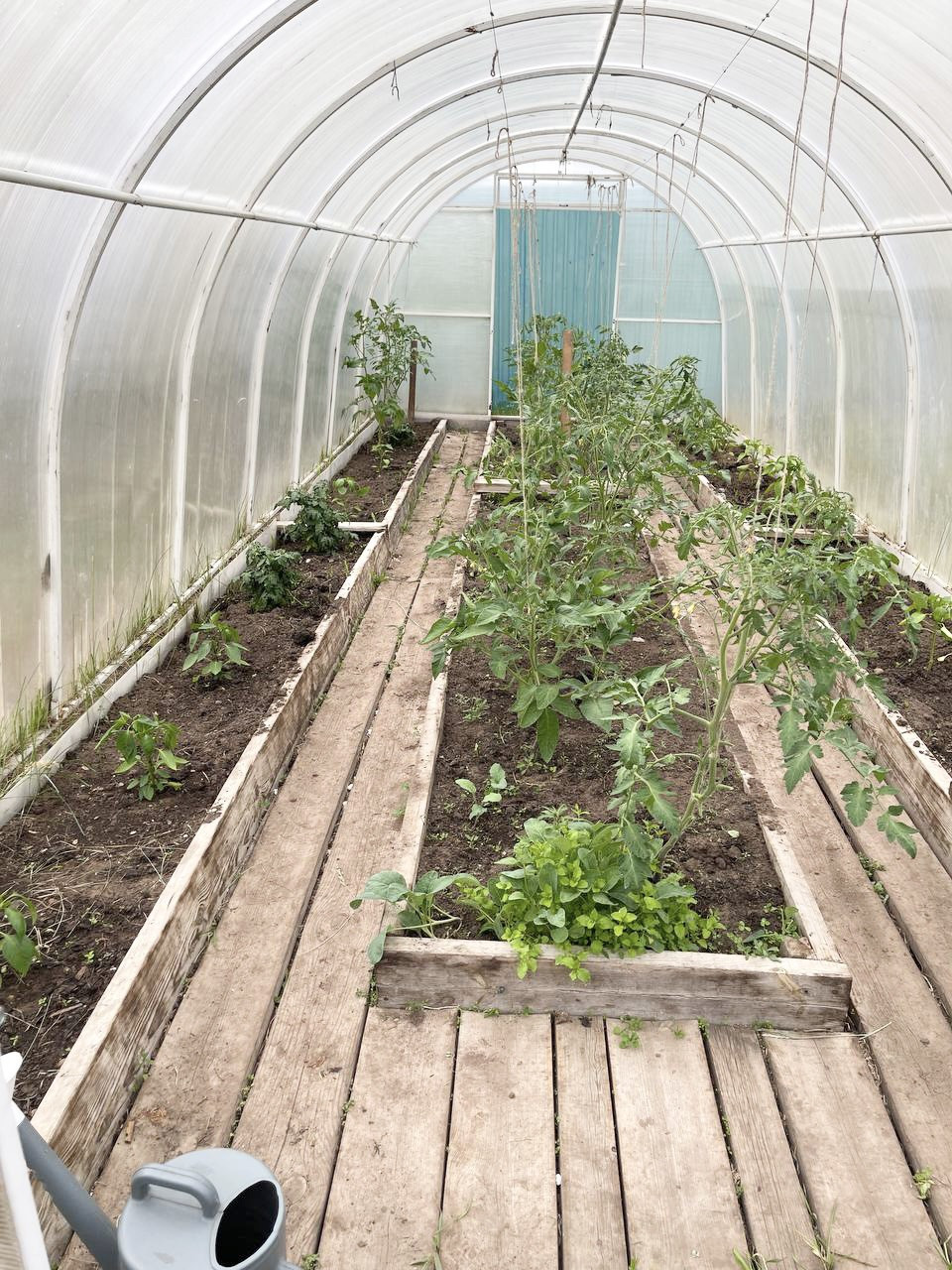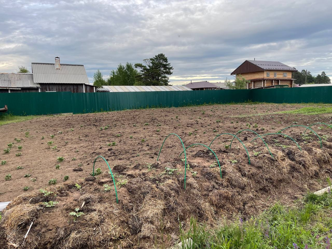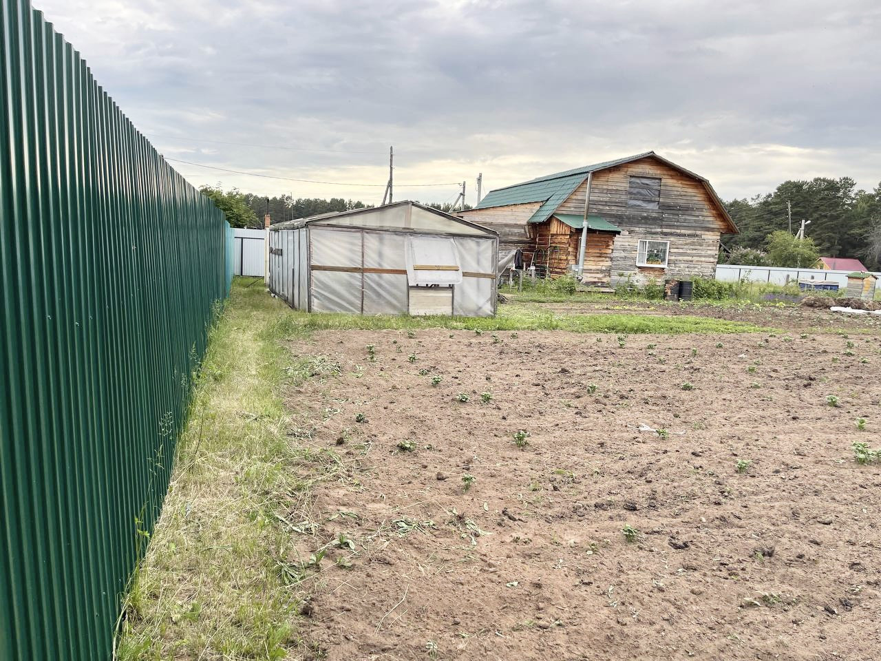 На участке плодово-ягодные кустарники, 2 большие теплицы , грядки.
