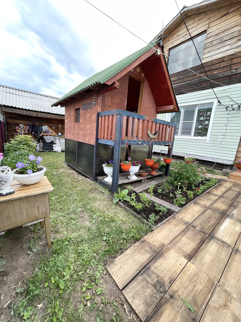 Предлагаем к покупке отличный дом с гаражом (4м* 6м) , с детским домиком для игр+ песочница.