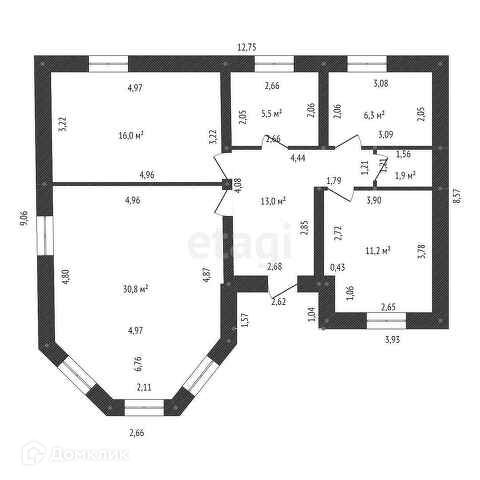 Общая площадь 90.7 м2