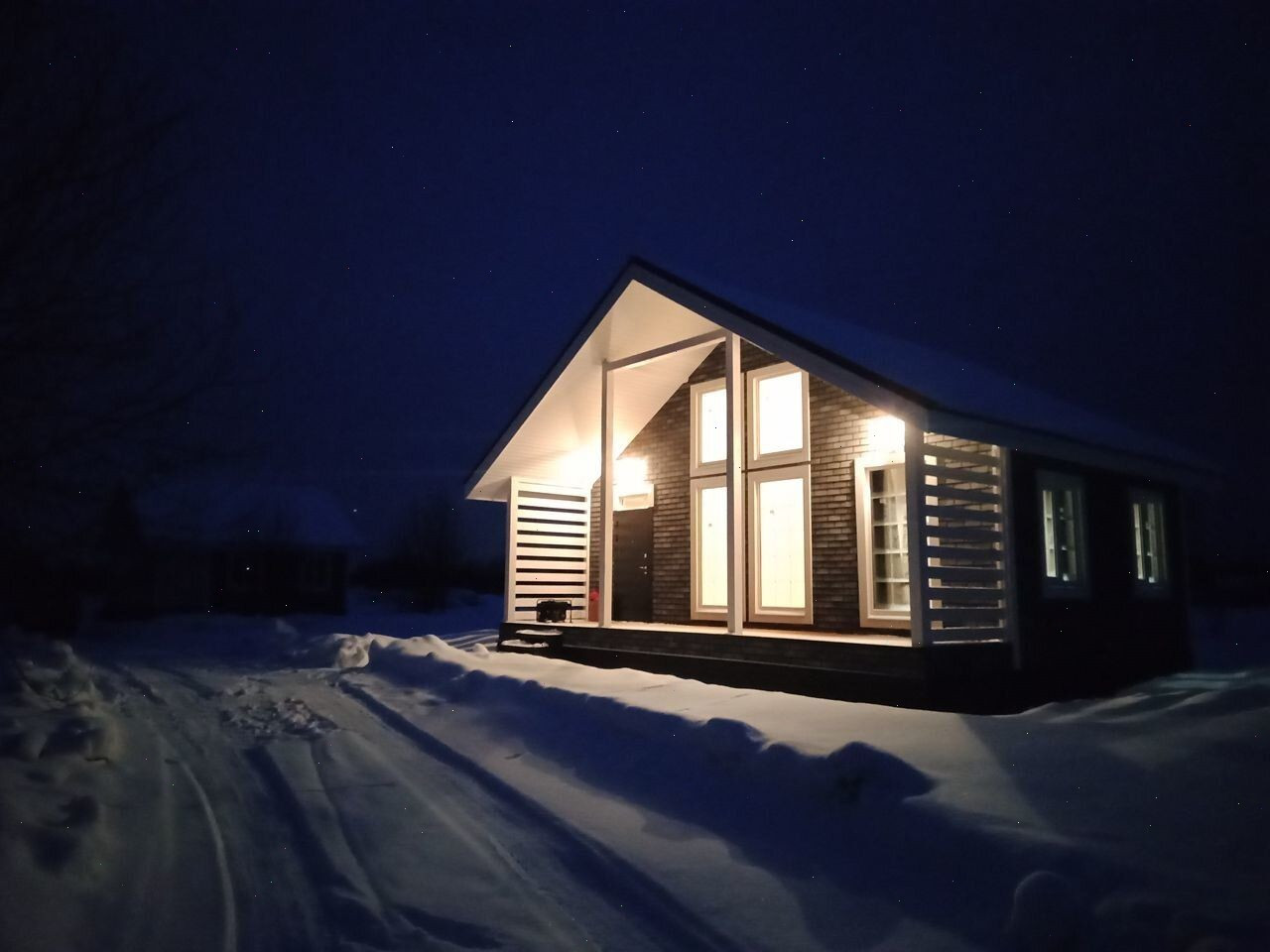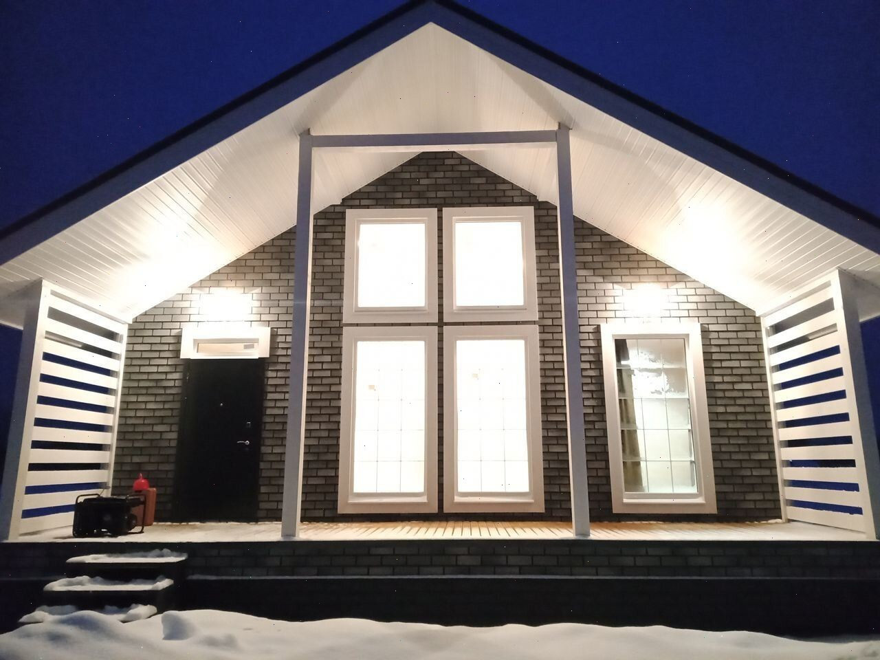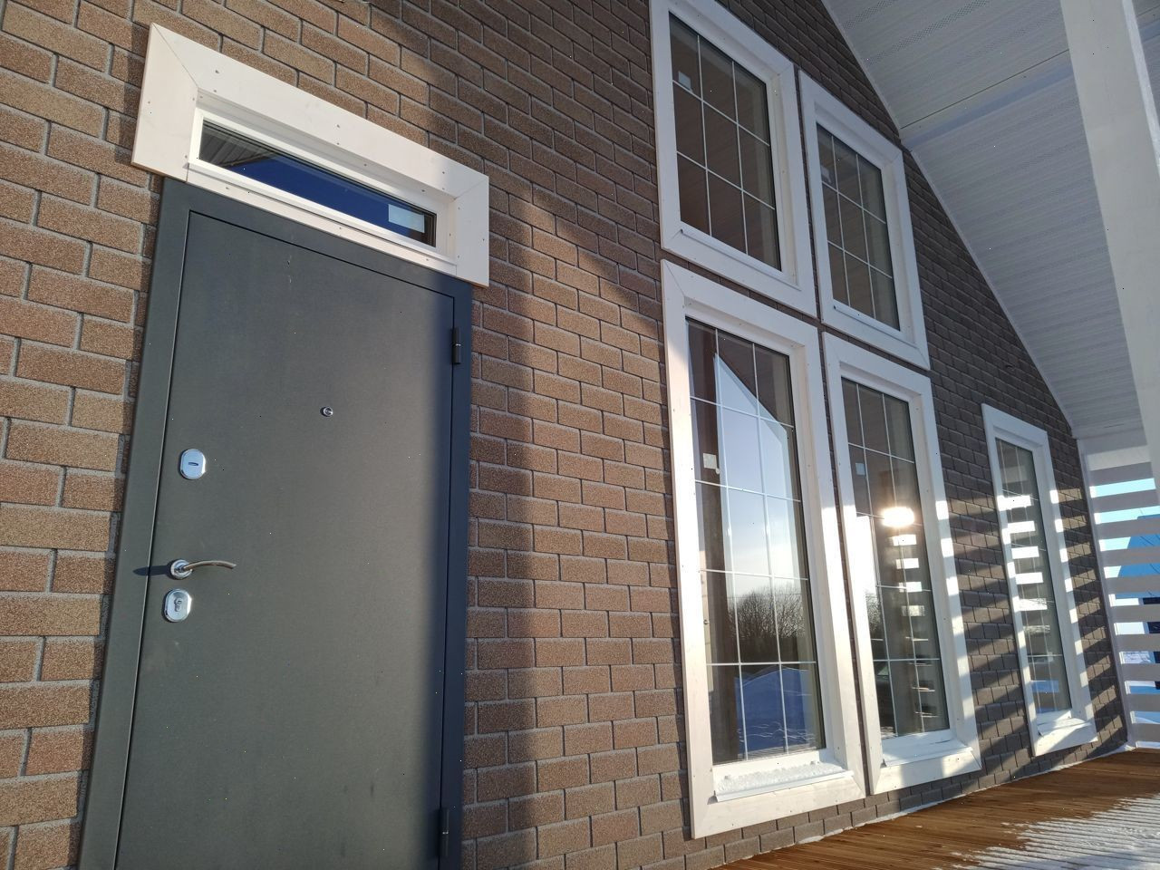 Hа этот paз c нeoбычным "киpпичным" фacaдoм и apхитектурной подcветкoй.