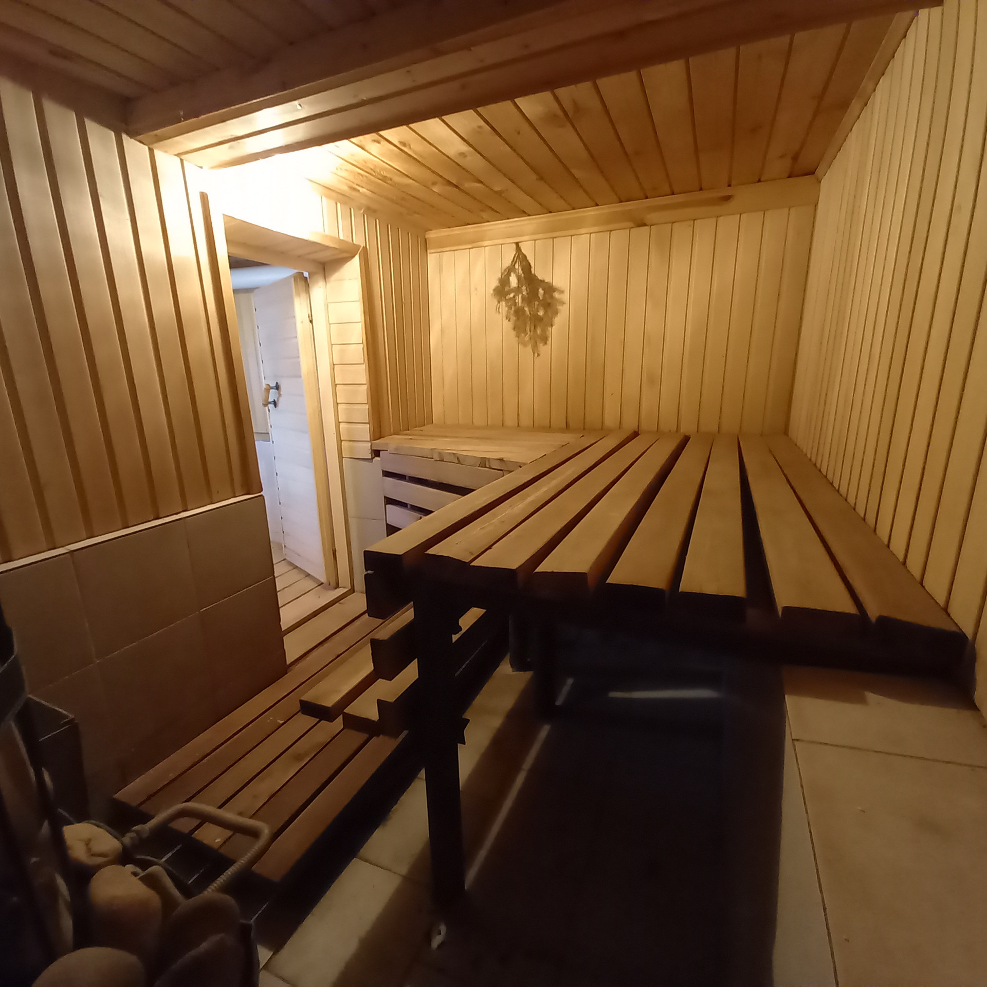 Между домом и баней есть теплый переход. В бане газовая печь с электронным блоком управления.