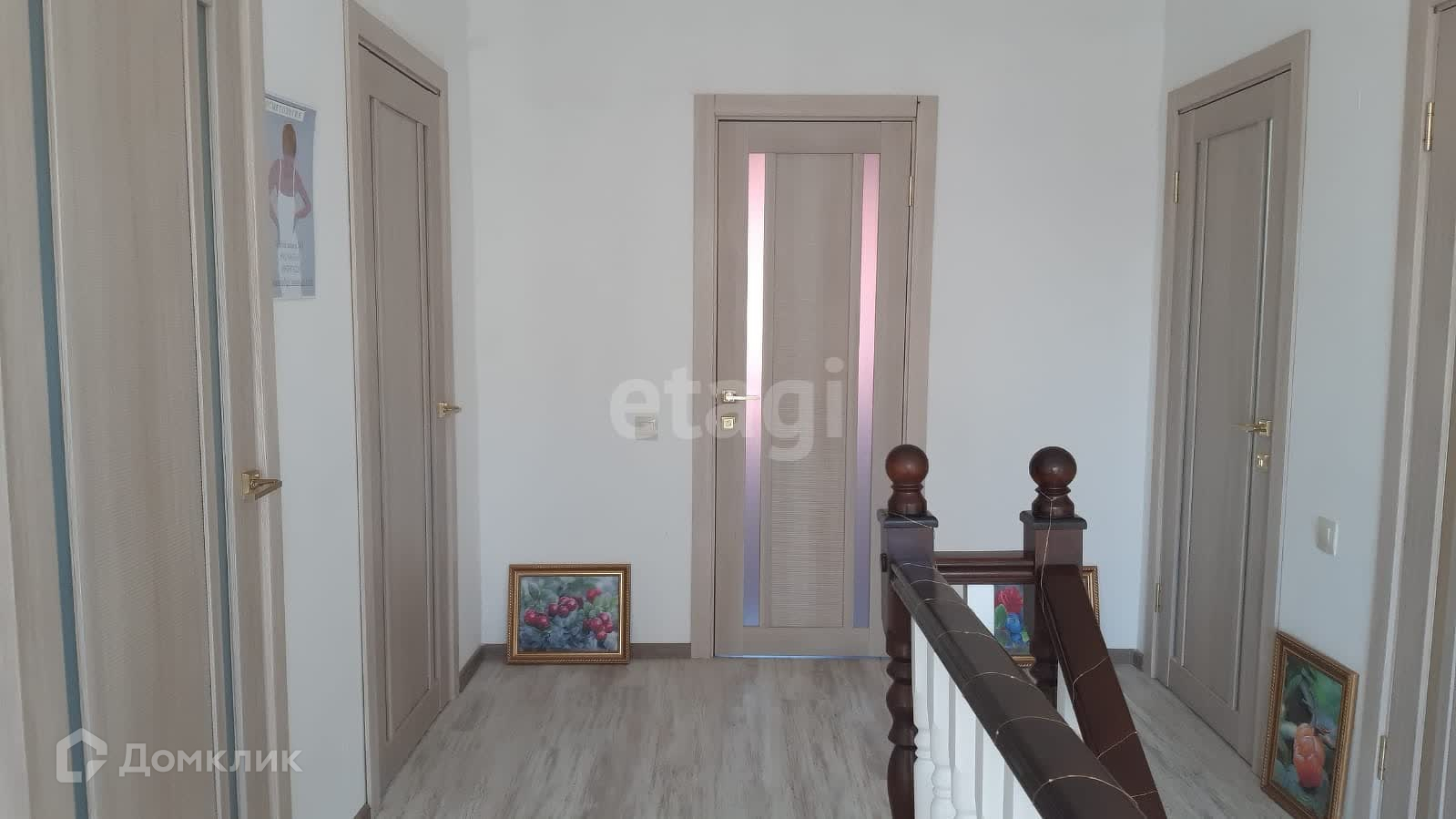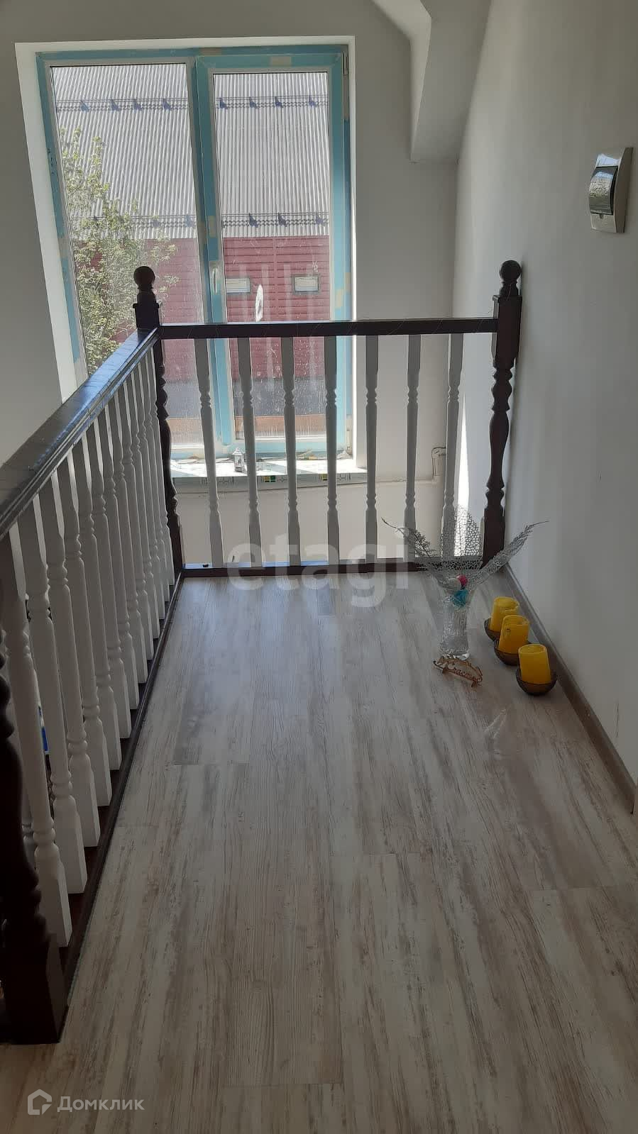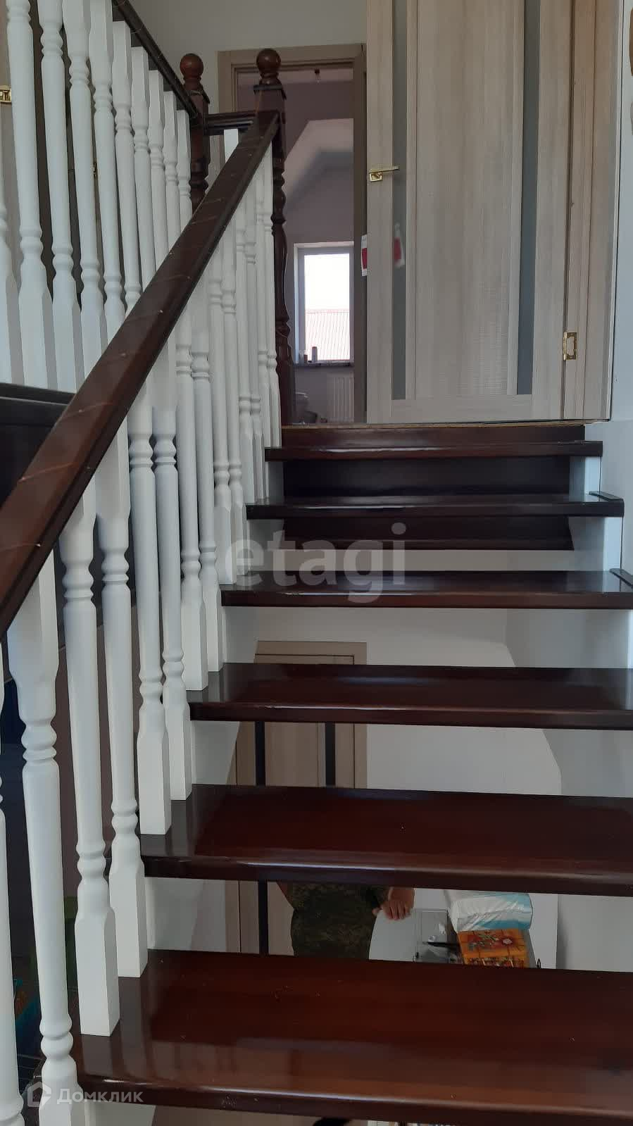 лестница, ведущая на 2 этаж, добротная, качественная из массива дерева (дуб); имеются 3 обустроенные, просторные комнаты (24, 64 м2; 31.08 м2; 23.80 м2); кабинет – 14.63 м2; гардеробная комната, совмещенная с гостевым санузлом (12,5 м2). Полы – качественный кварцвинил.