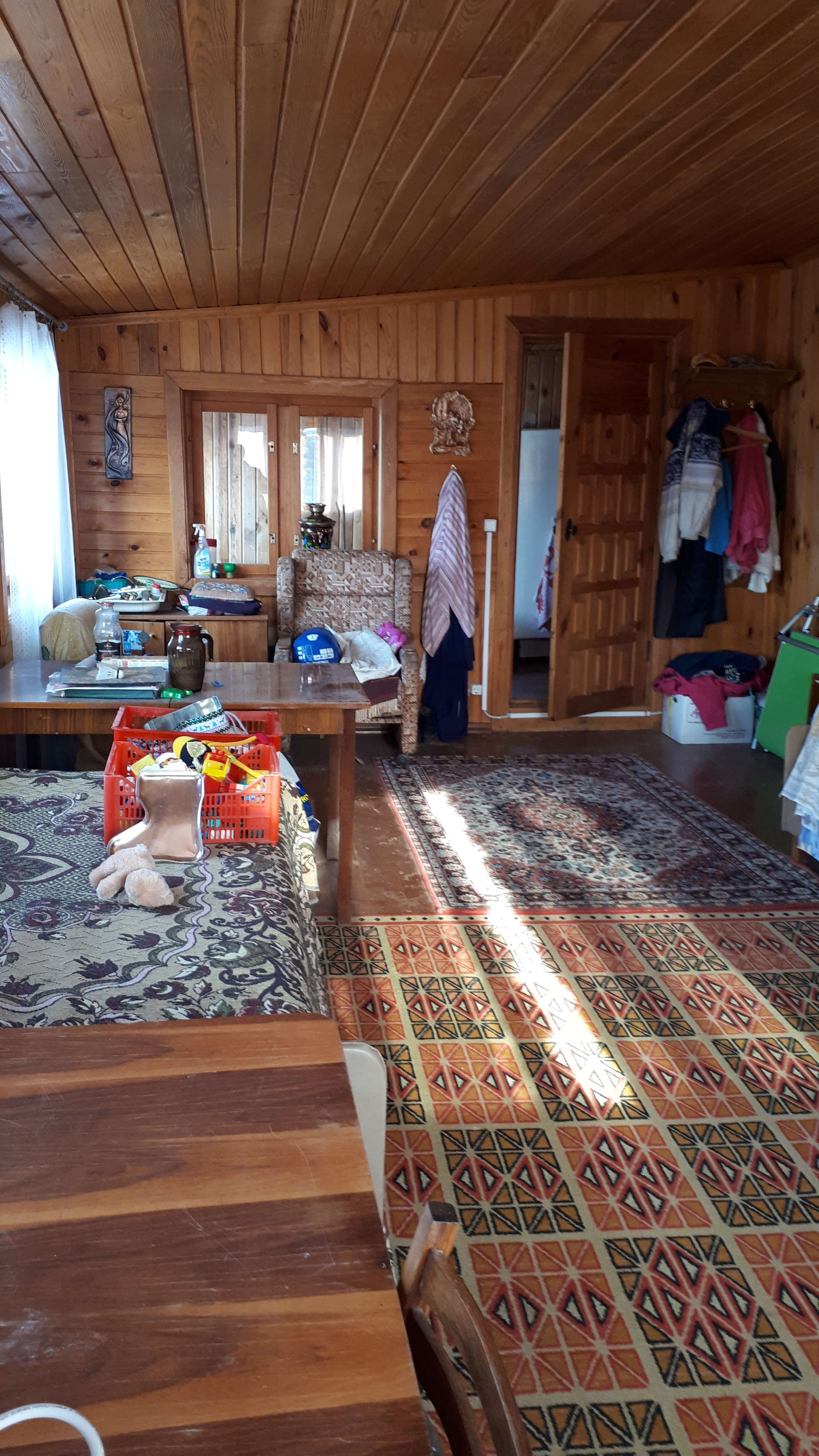 Дом расположен в верхней части участка, вид из окон на три стороны, включая участок, хорошо просматриваются насаждения, баня с верандой ( о бане- моечное отделение, парная и комната отдыха, все аккуратно обшито вагонкой, печь из толстостенного металла, долго держит тепло)