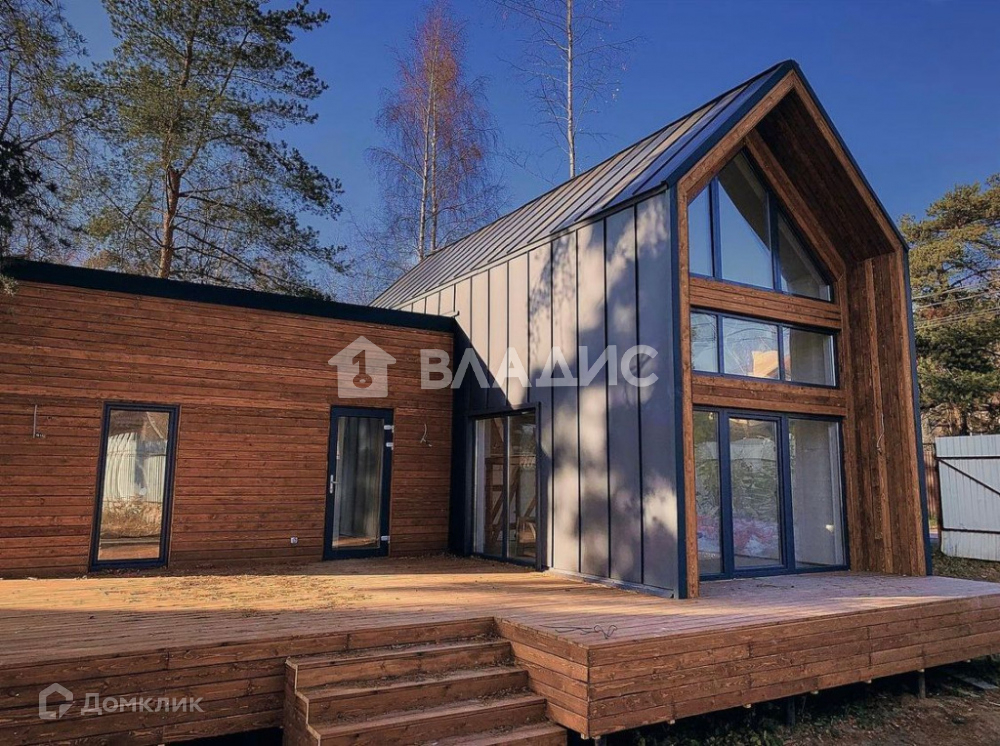 Новый (декабрь 2021) стильный дом в стиле барн со вторым светом и большими окнами. 73 метра + 27 метров открытая терраса под высоченными соснами. Для круглогодичного проживания.