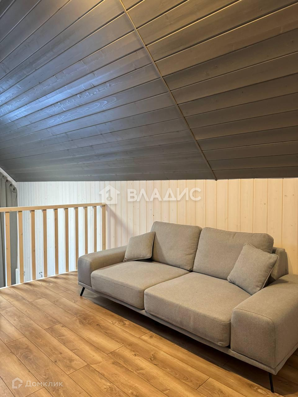 На втором этаже стеллаж и диван.