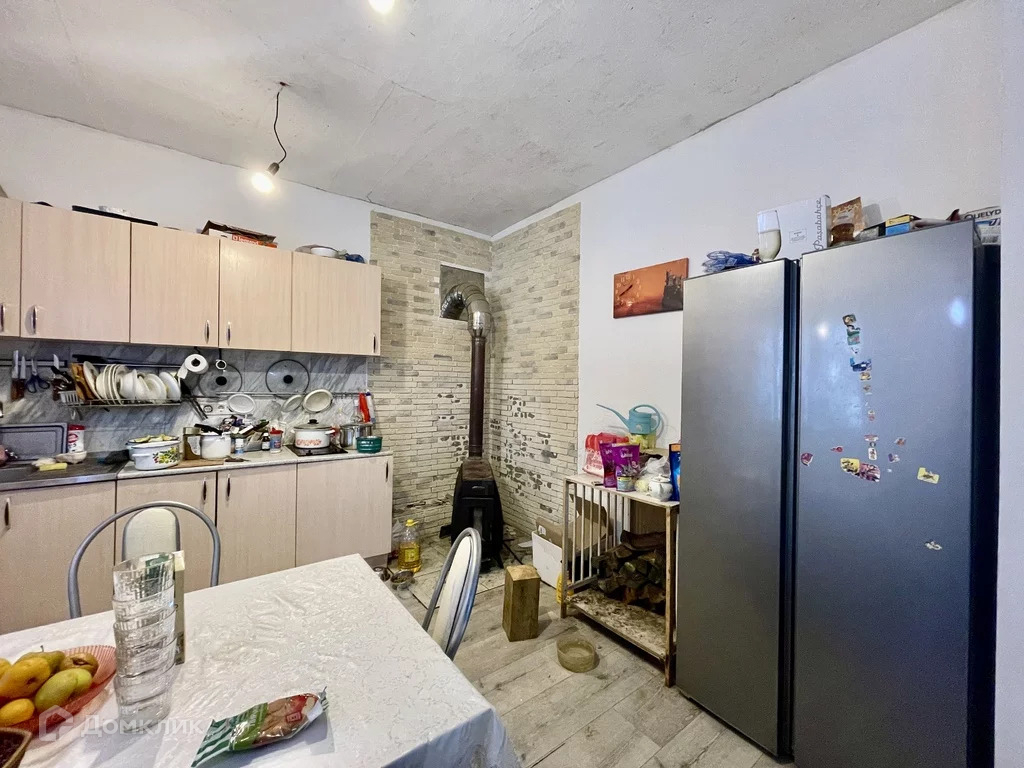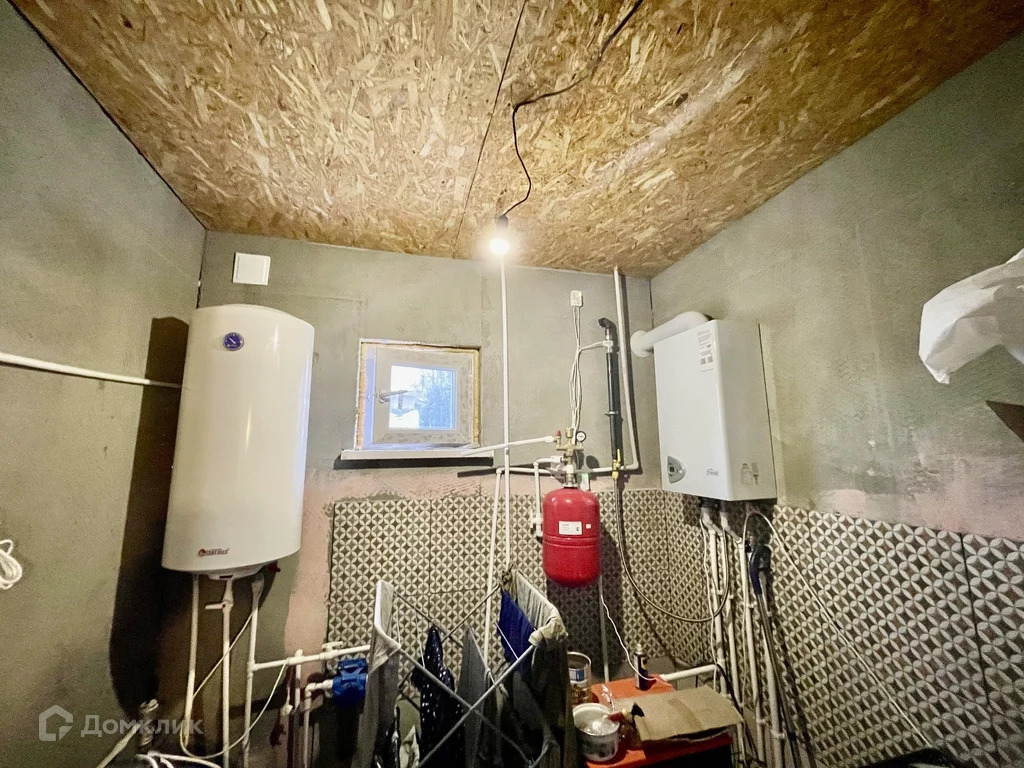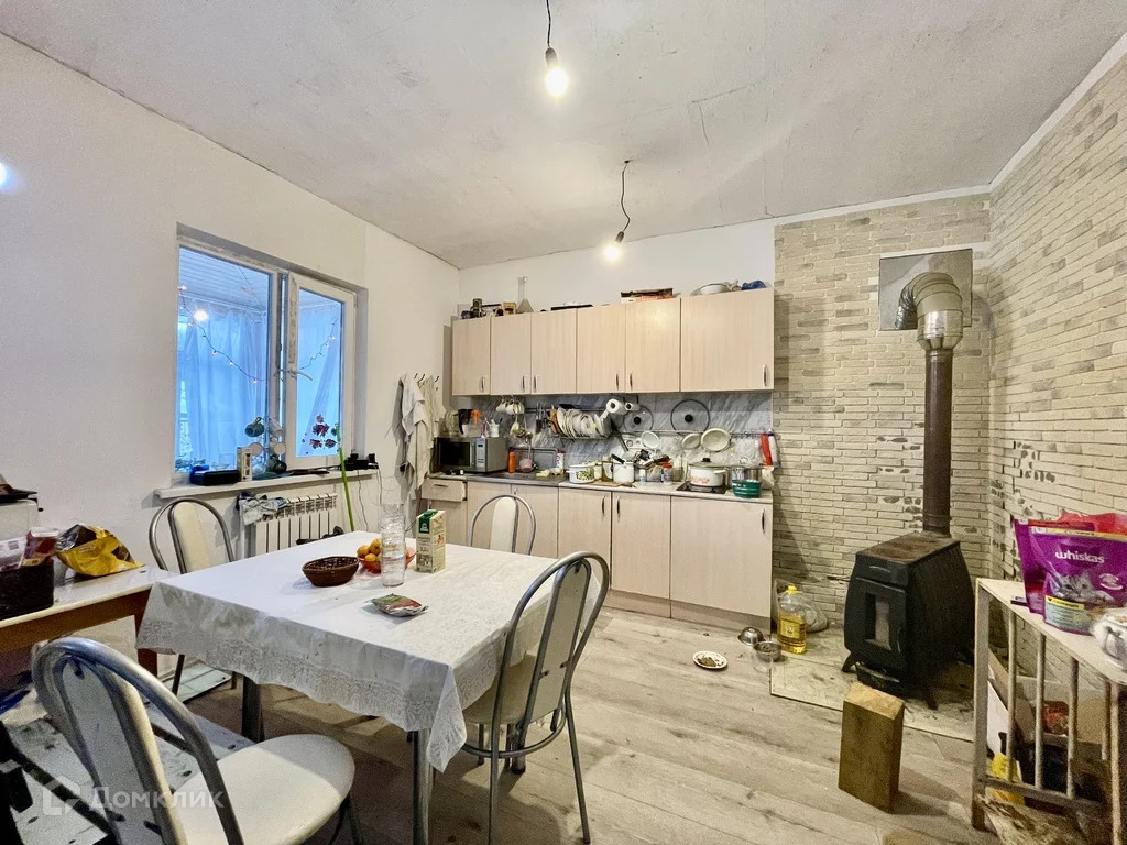 Дом отапливается газом, на кухне стоит дровяная печка-буржуйка. Также есть дополнительный электрический котел.