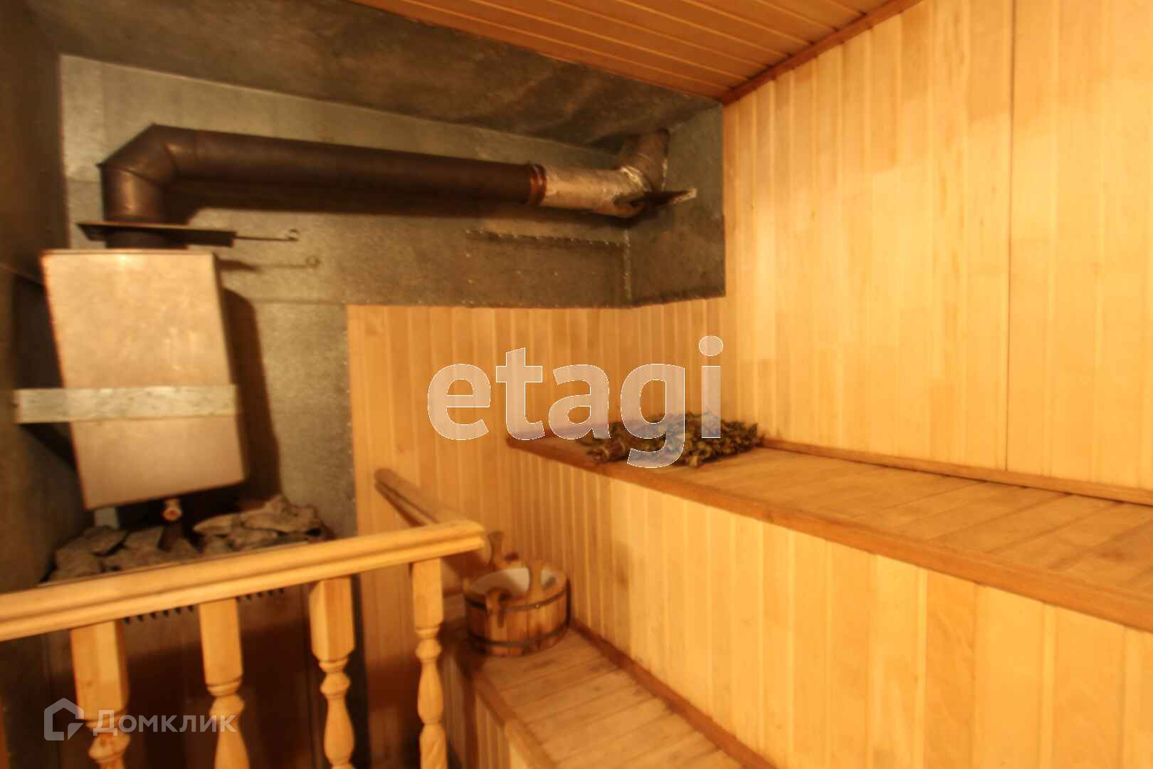На цокольном этаже отдельная обширная комната для отдыха, с камином и сауной, имеется прачечная.