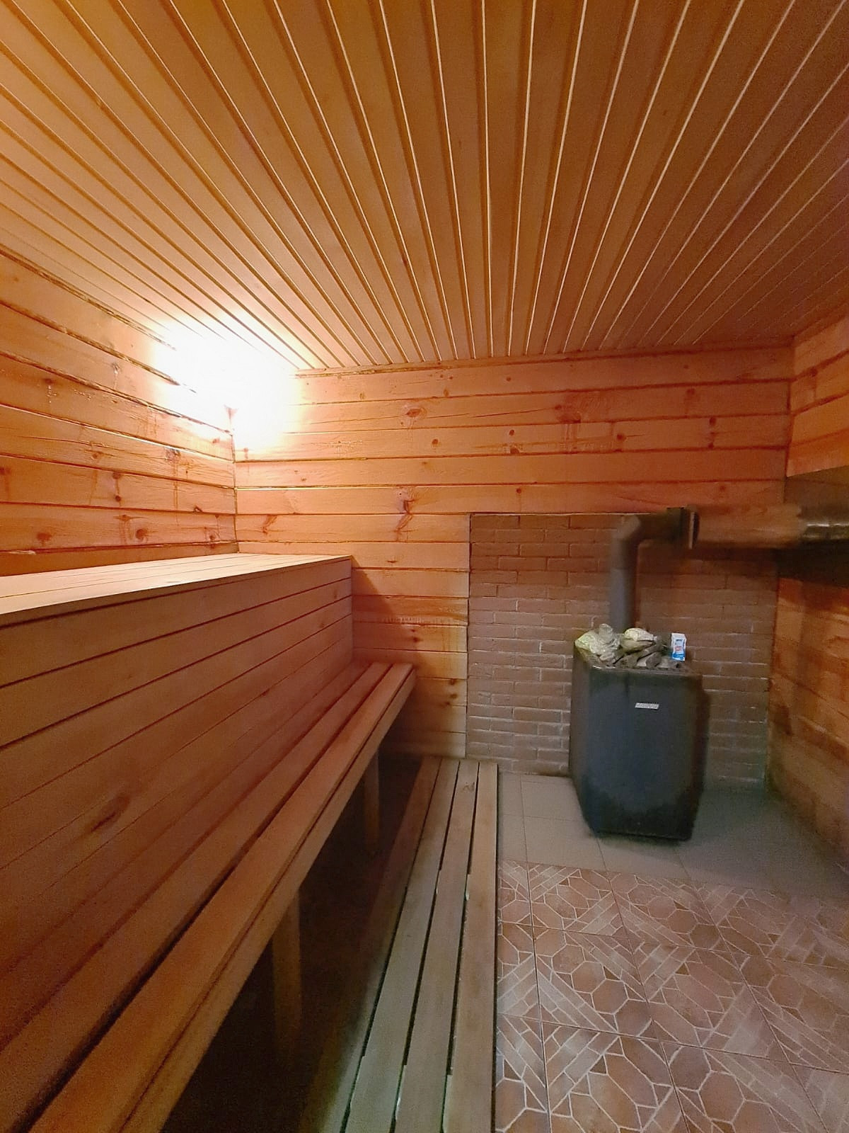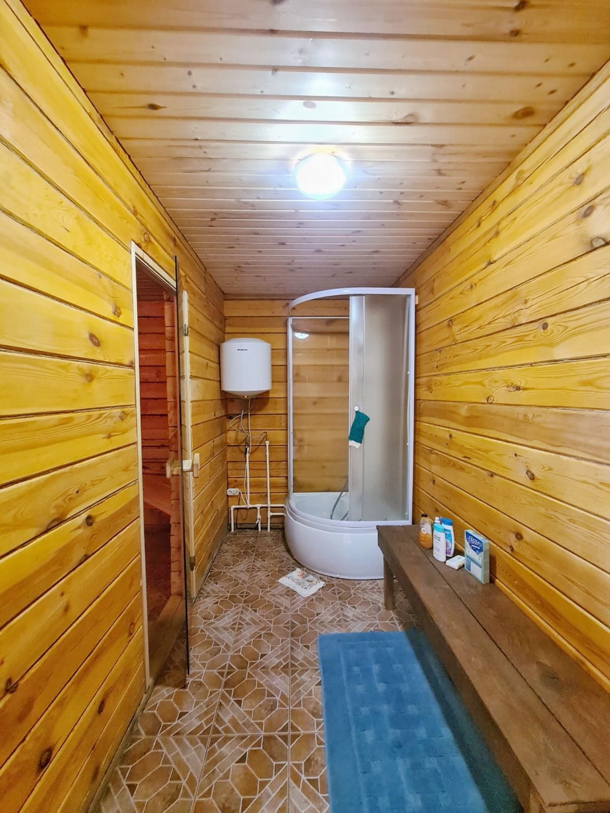 Дом из бруса 150x150 мм, зимний лес, крыша покрыта ондулином, сделана под черепицу, пластиковые окна, сауна. Построен в 2015 году.