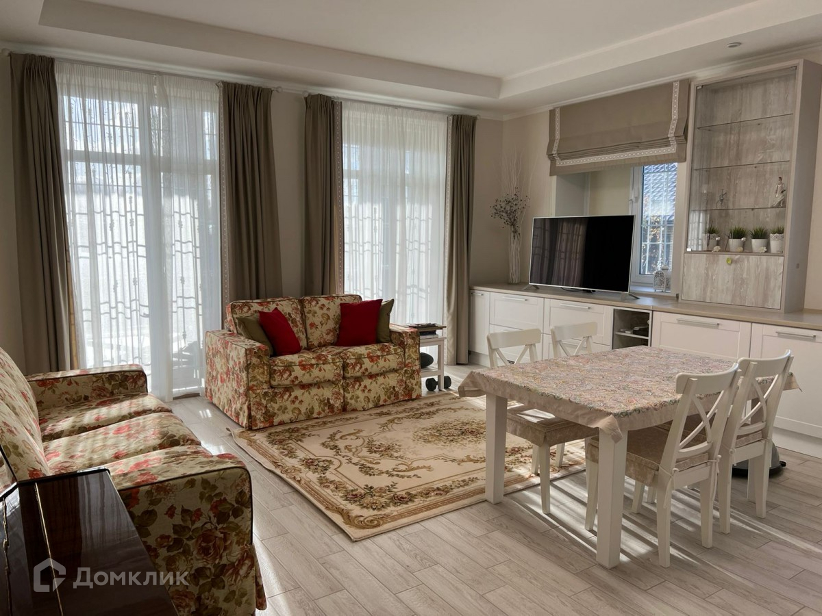 Укомплектован дорогой мебелью, техникой, с портьерами и светильниками