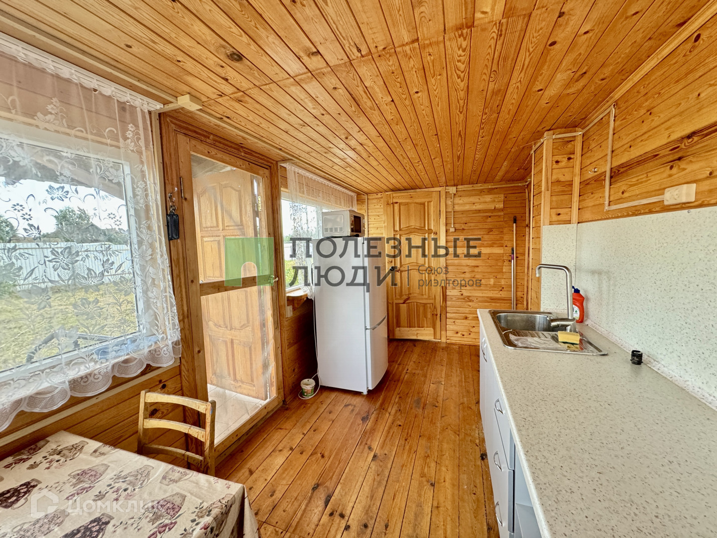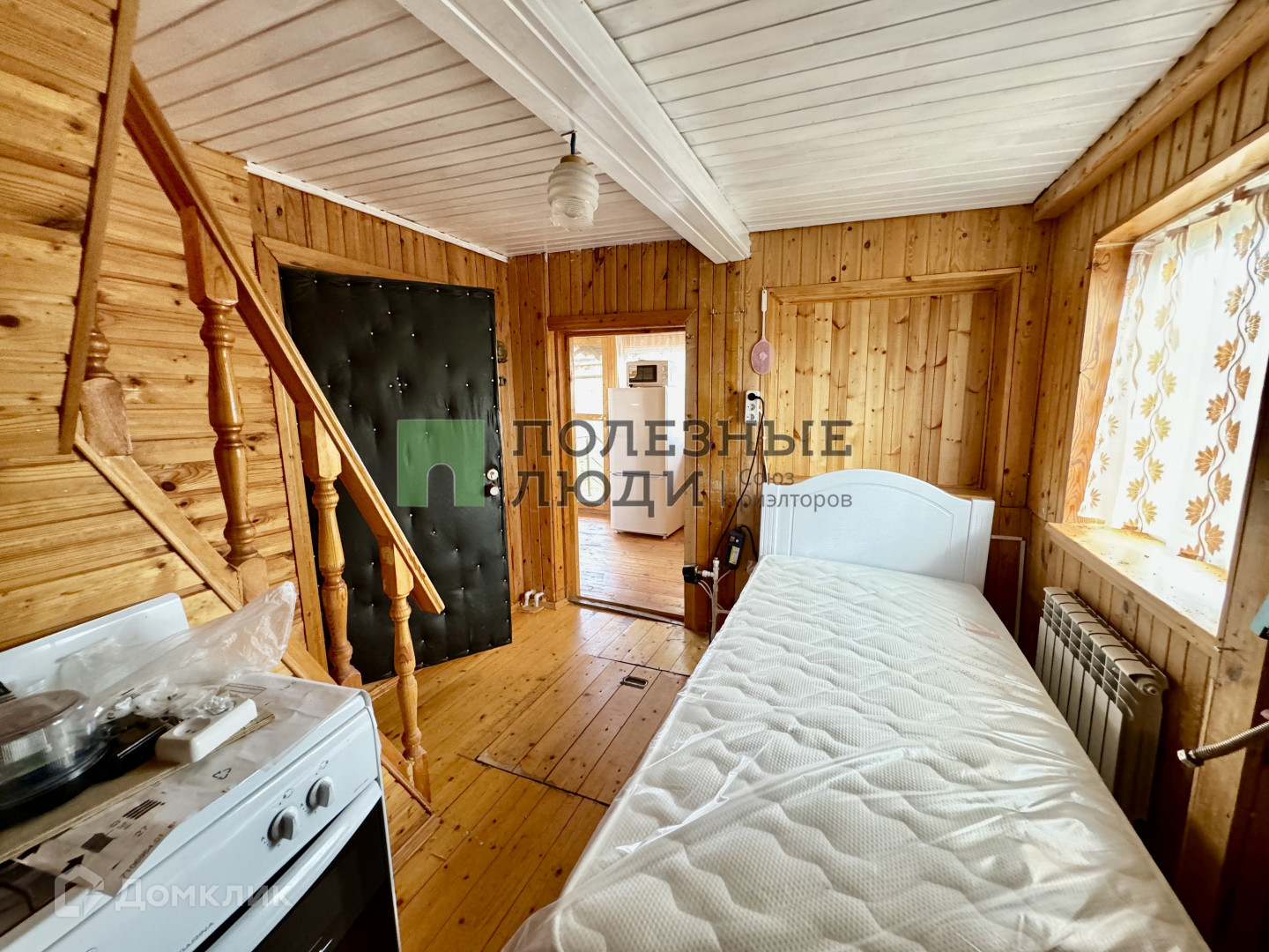 Летняя кухня, санузел совмещенный, две комнаты на первом этаже и одна общая комната на втором этаже.