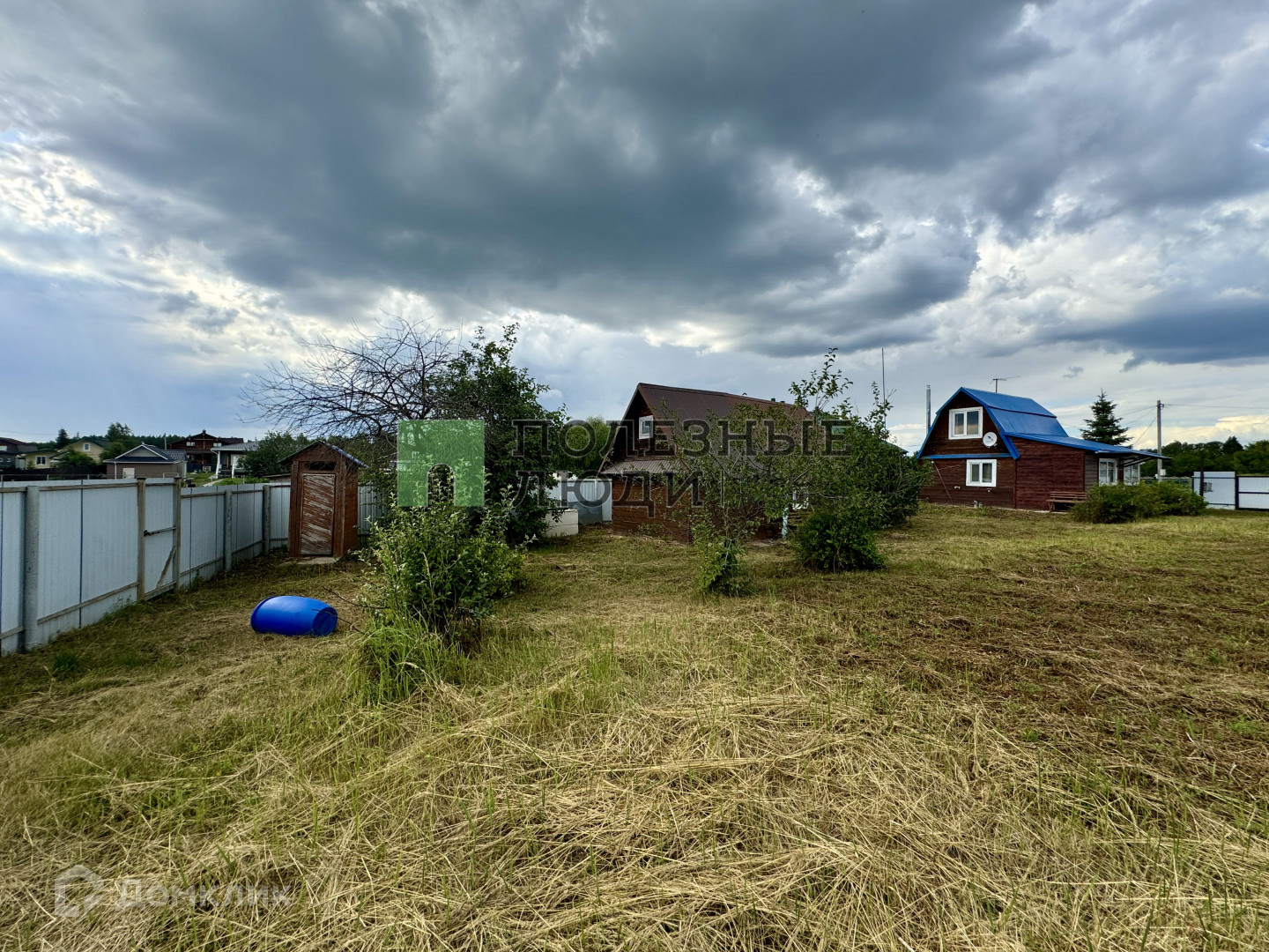 Участок огороженный забором по всему периметру, на участке есть хозпостройка, баня, уличный туалет.