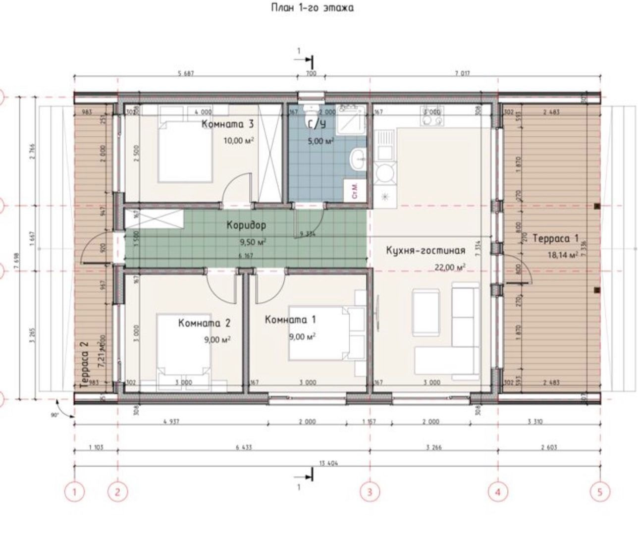 Дом строился из качественных материалов, имеет грамотную планировку. 3 спальни, большая кухня-гостиная с выходом на просторную террасу, санузел, прихожая.