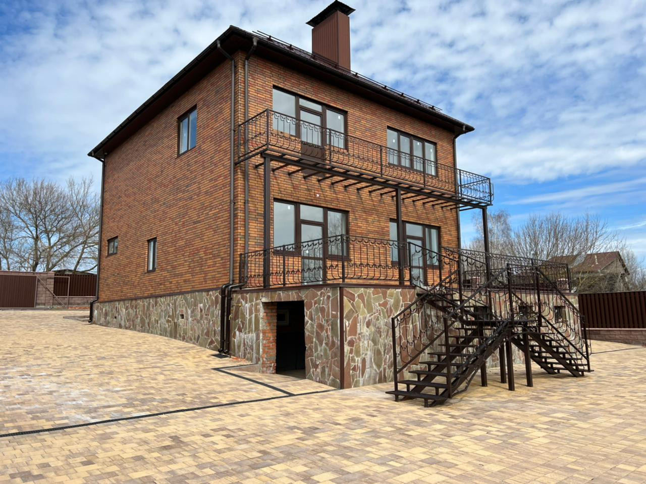 Дом имеет открытую большую террасу, второй этаж балкон. Цокольный этаж под всем домом