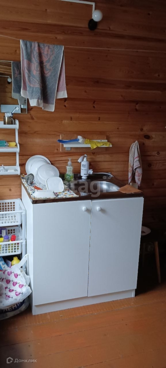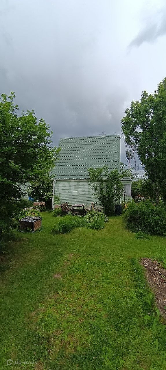 Обшит сайдингом, площадь 43,5 кв. м. В доме две комнаты, пристроены крыльцо, веранда. Внутри дом отделан вагонкой.