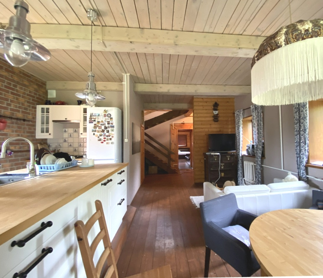 В домс ремонтом, мебелью,в хорошем состоянии. Просторная кухня гостиная, спальня на первом этаже, и на втором две,сан/ узелна первом этаже совмещен. Бойлерная.Остается мебель частично.