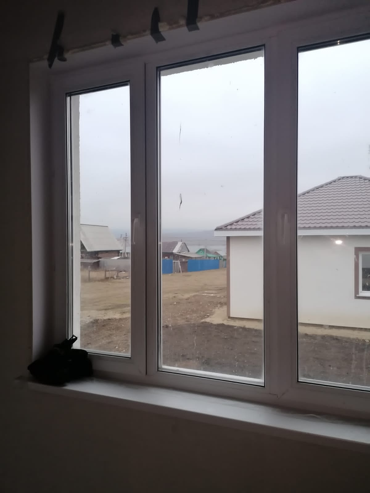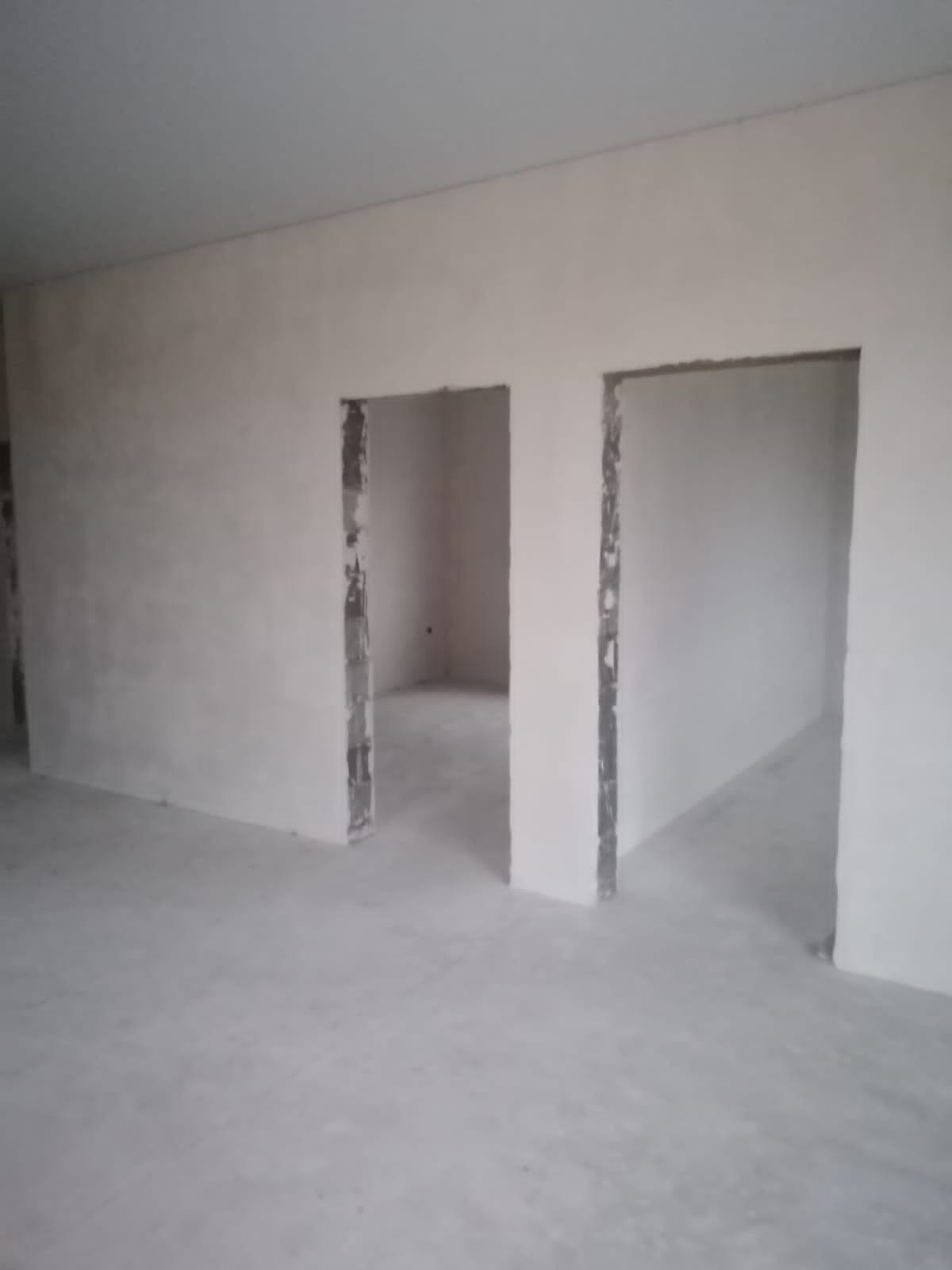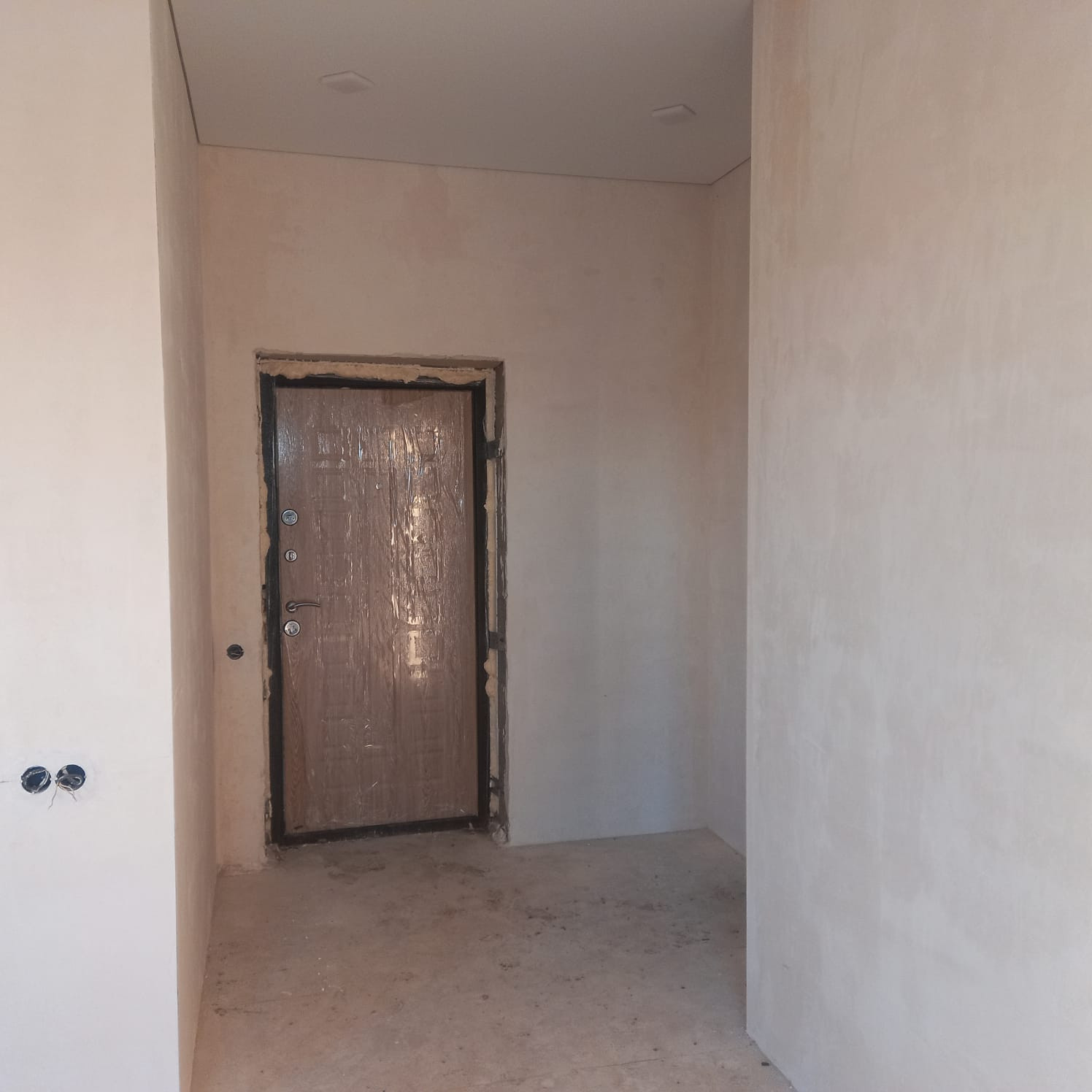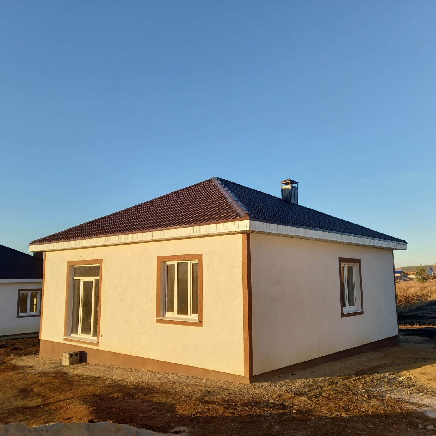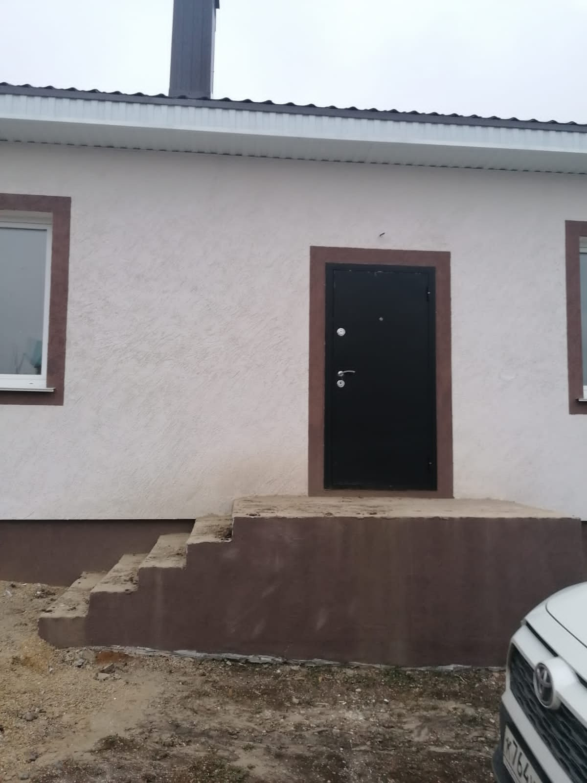 Внутри выполнена предчистовая отделка: стены выровнены под обои, пол полусухая стяжка, натяжные потолки, электричество по дому разведено.
