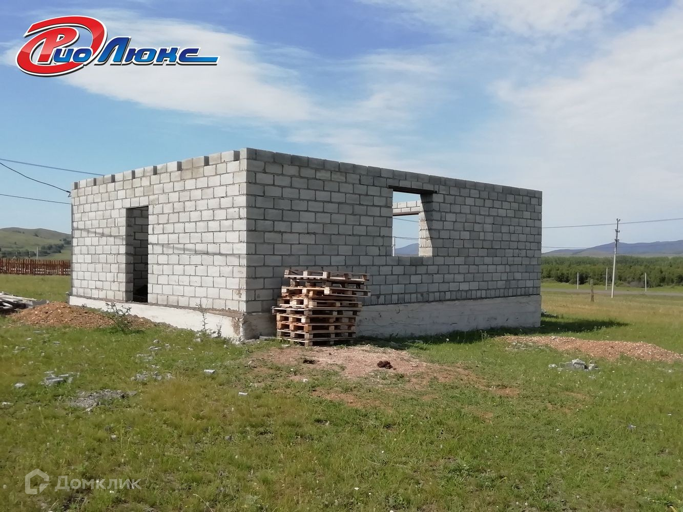 Дом на этапе строительства, площадью 80 м2, материал шлакоблок, размер коробки 11 на 7,2 м.