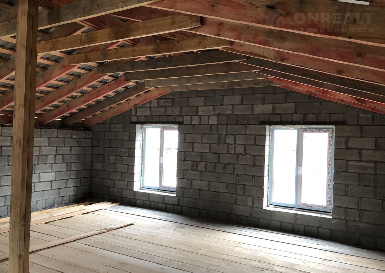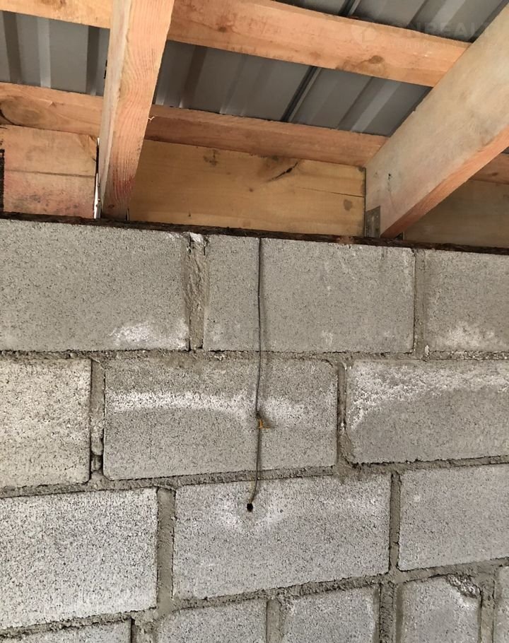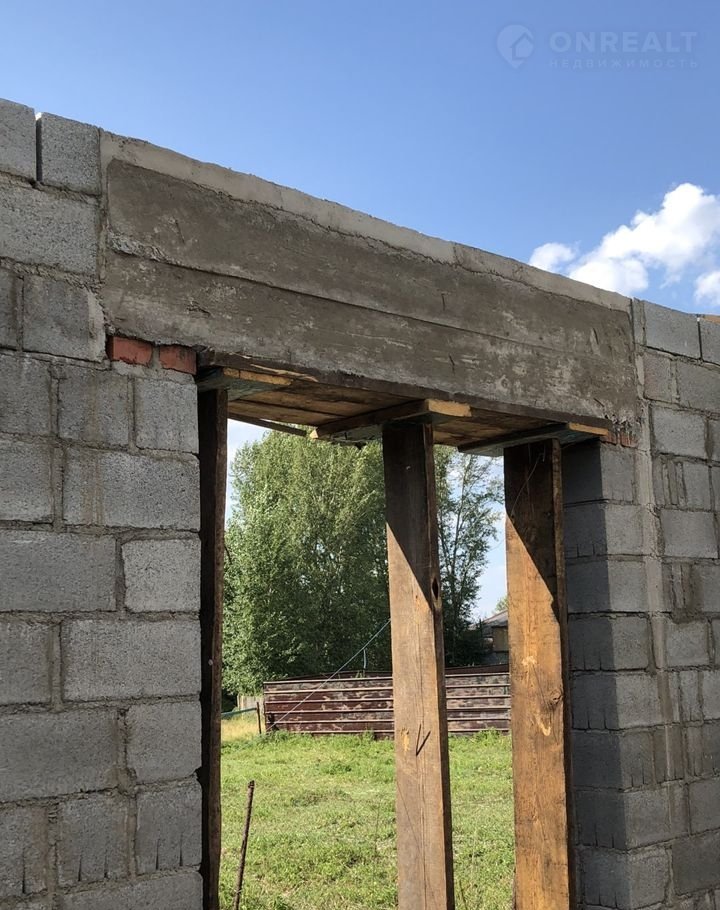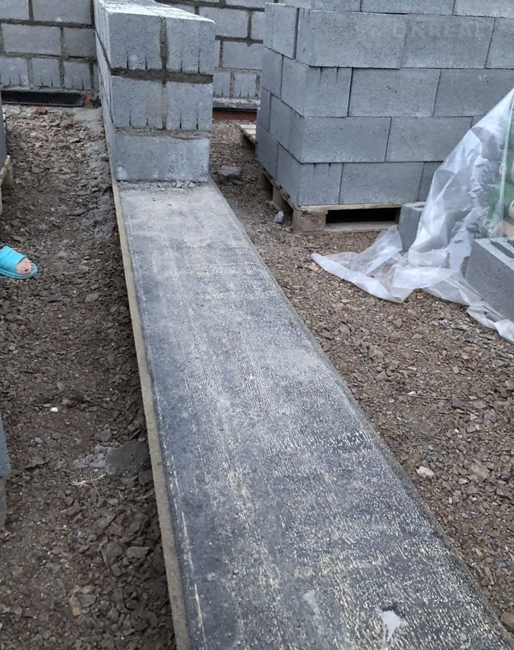 Стены: 400 мм шлакоблок (30% пустотности). Армированы стальной сеткой. 100мм утеплитель. Фасад армирован сеткой, нанесен клей, в течении недели будет оштукатурен короедом(+200 тысяч к цене). Перемычки проема несущей стены и большого проёма окна на веранду - монолитные, выполнены из армированного бетона. Несущая стена первого этажа - шлакоблочная 400 мм.