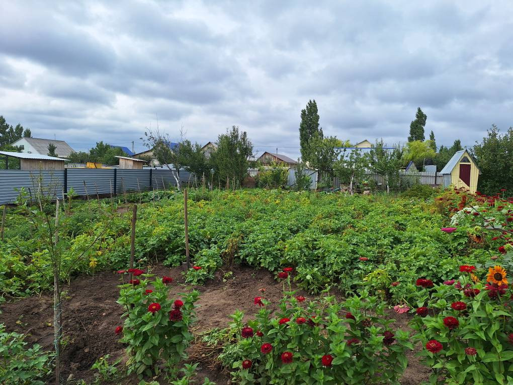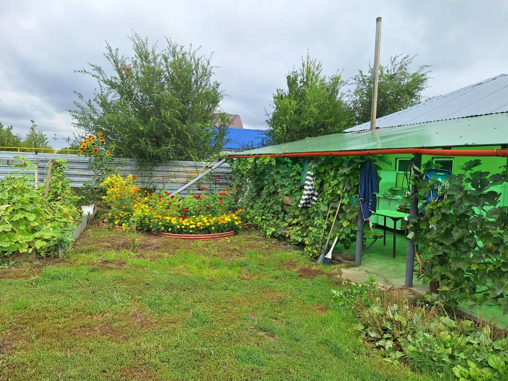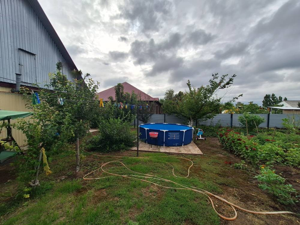На участке много плодовых деревьев (яблоня, груша, вишня) есть место для отдыха и барбекю, установлен бассейн.