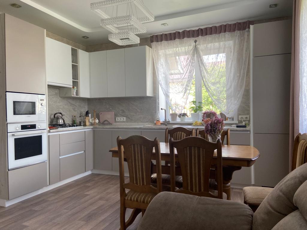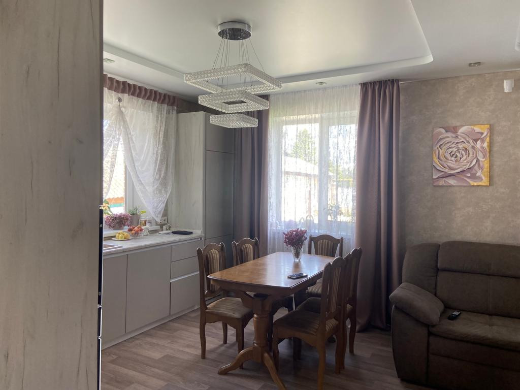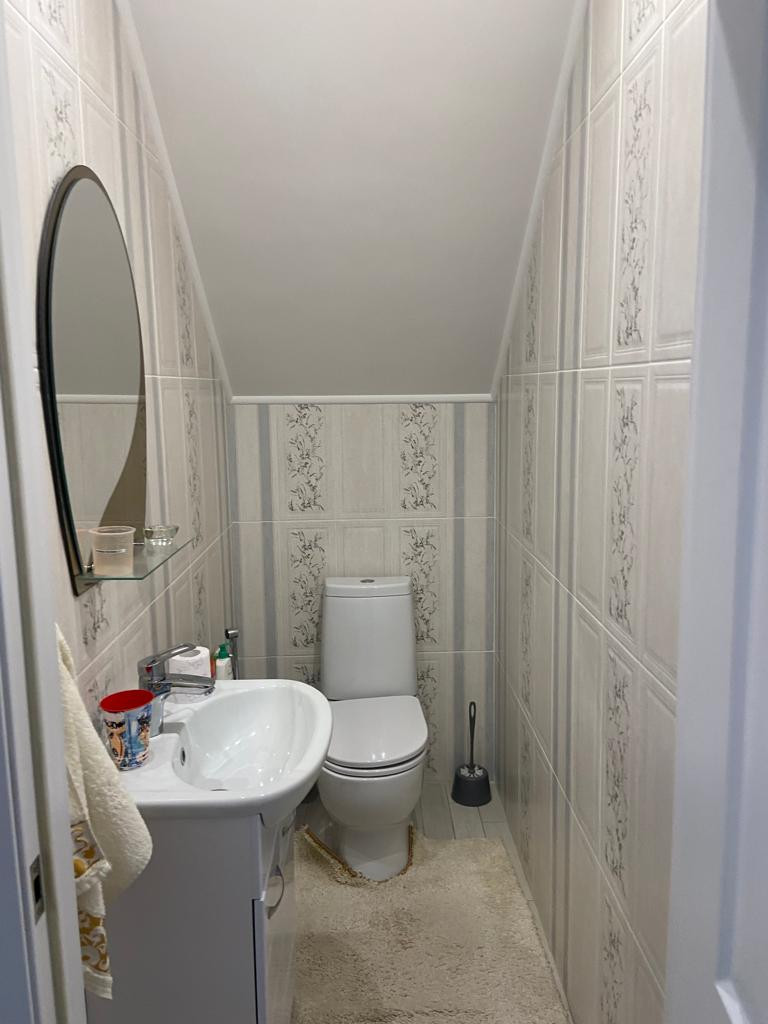 На первом этаже дома, большая прихожая,гардеробная, котельная,,хозяйственная комната,совмещенный сан узел, в современном кафеле, и с новыми смесителями, просторная  светлая гостиная с тремя окнами .на втором этаже расположено 4 спальной комнаты, гардеробная, сан узел  . Первый этаж оборудован теплыми полами. В дом проведен интернет, есть тарелка триколор. Вся встроенная мебель остается. Везде современный евро ремонт.  Прекрасный вариант, заезжай и живи. Доброе отзывчивые соседи.