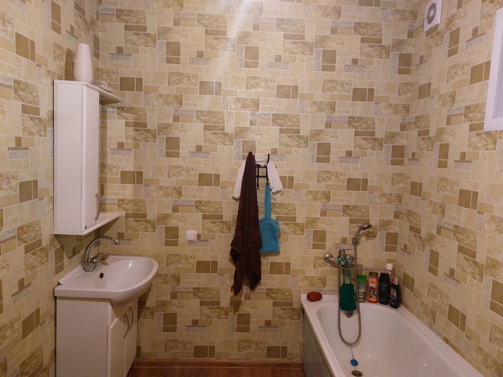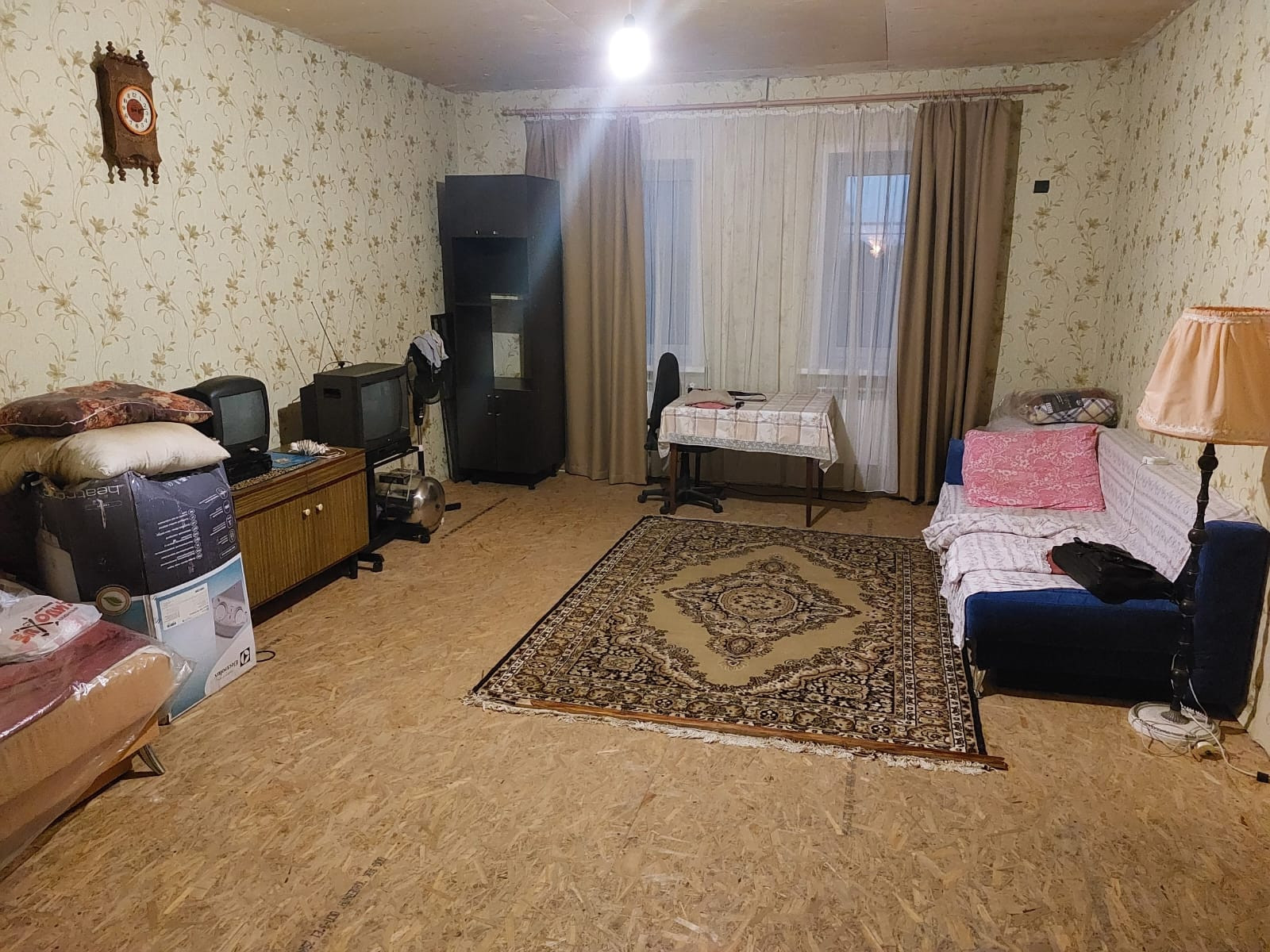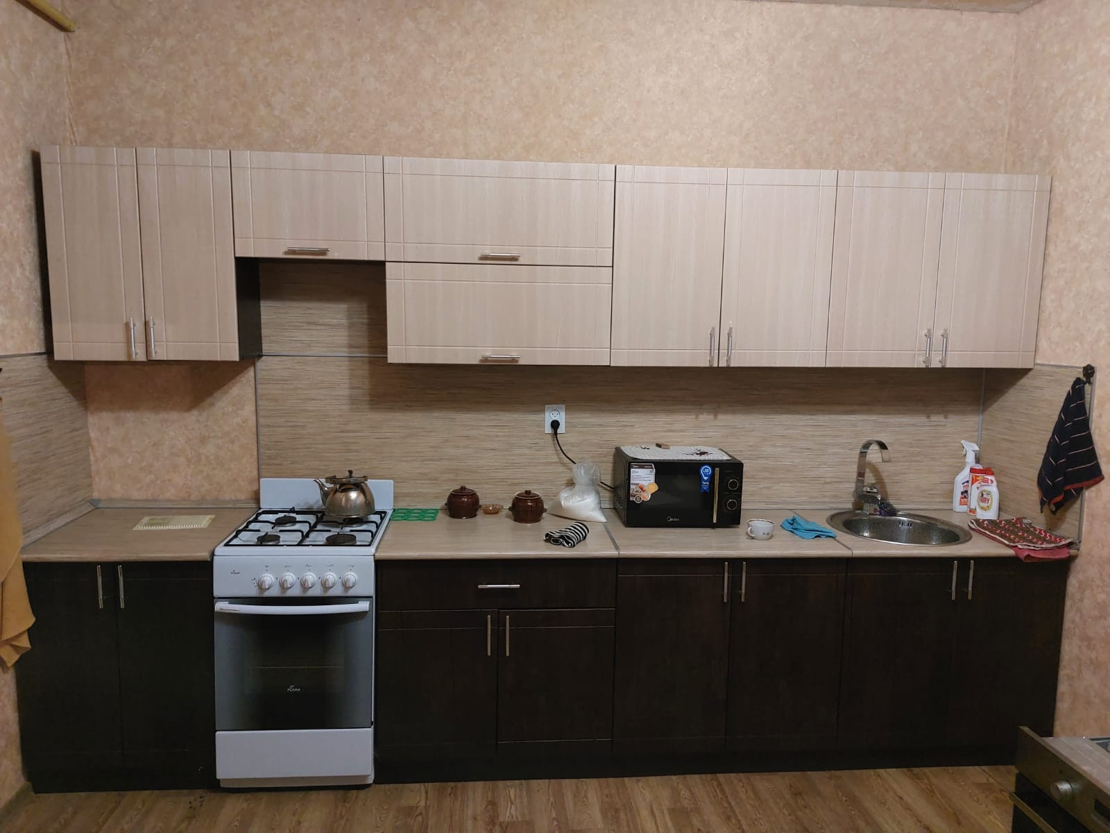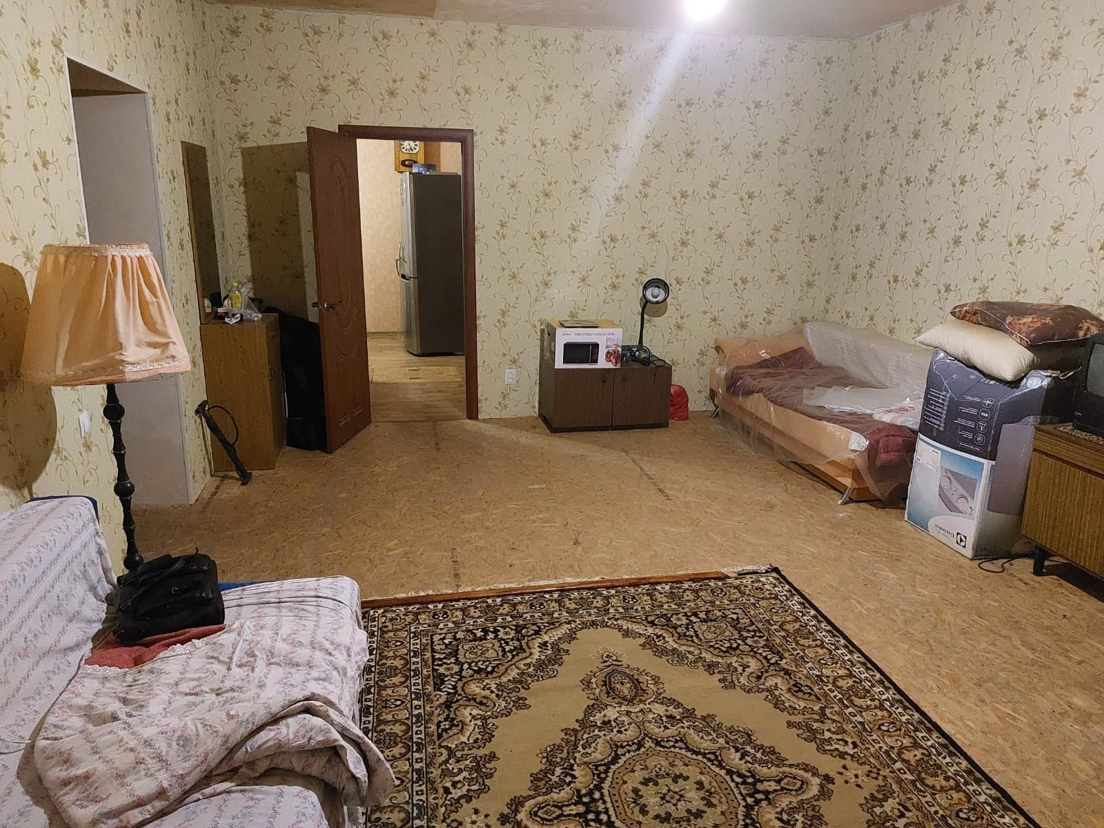 Новым собственникам останется кухонный гарнитур с газовой плитой, холодильник, стиральная машина, диван.