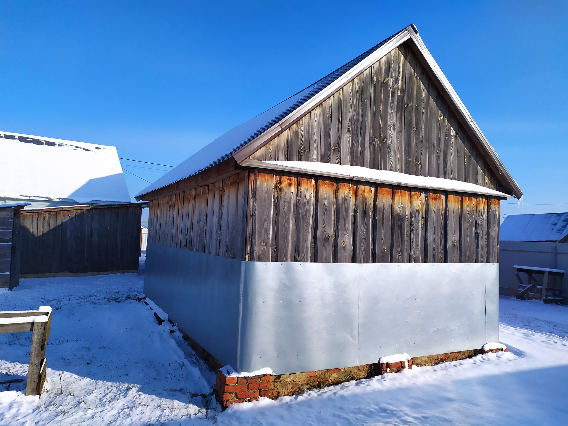 Участок огорожен забором, на участке поставлен сарай для хранения инвентаря с погребом.