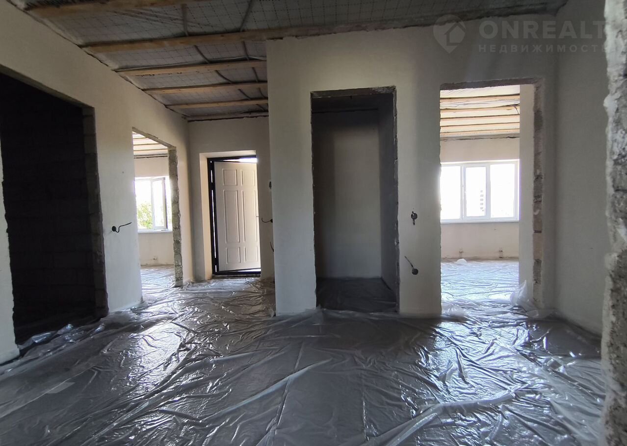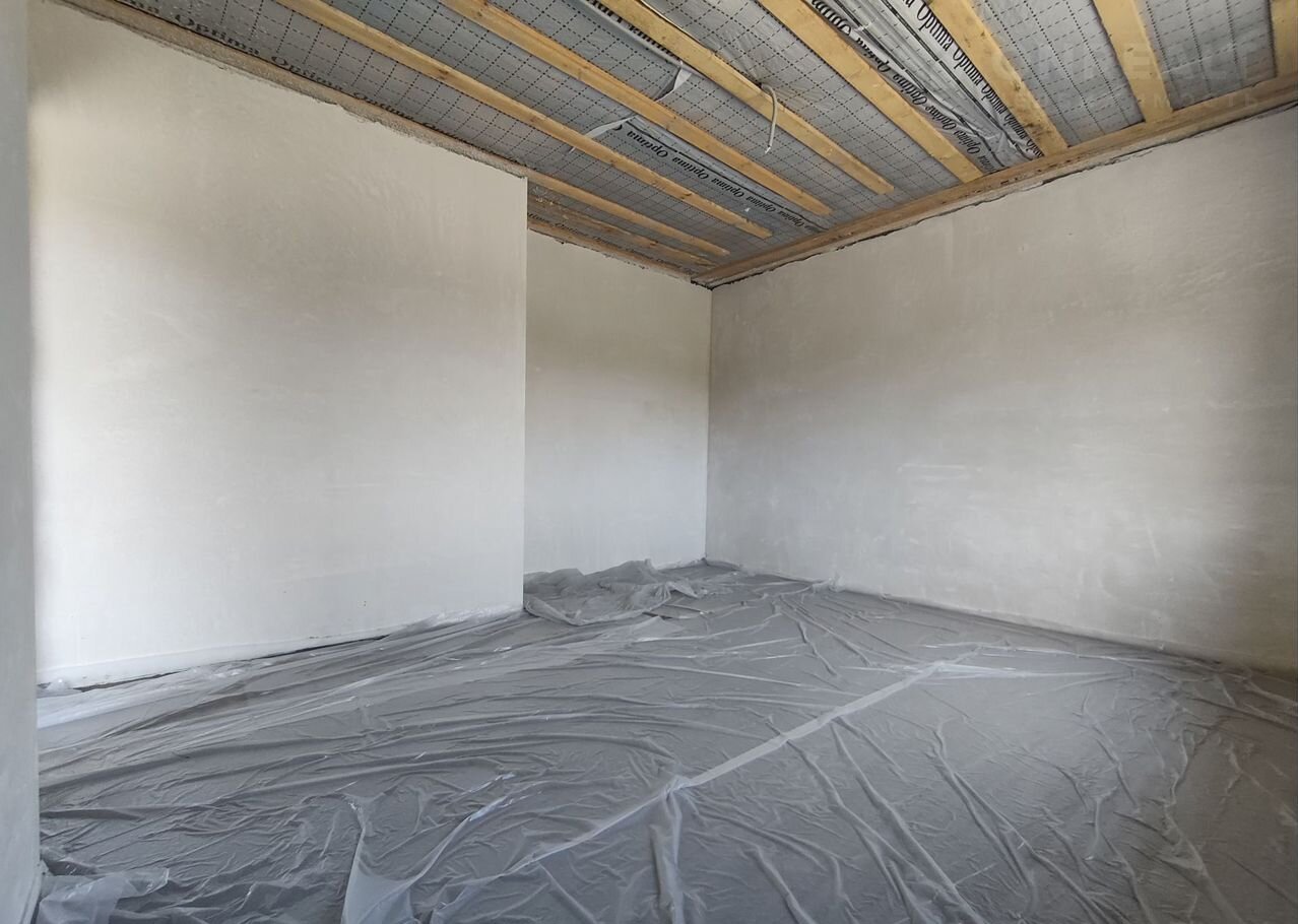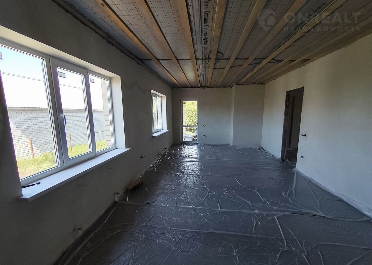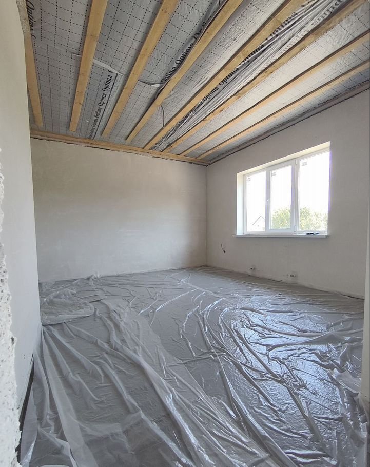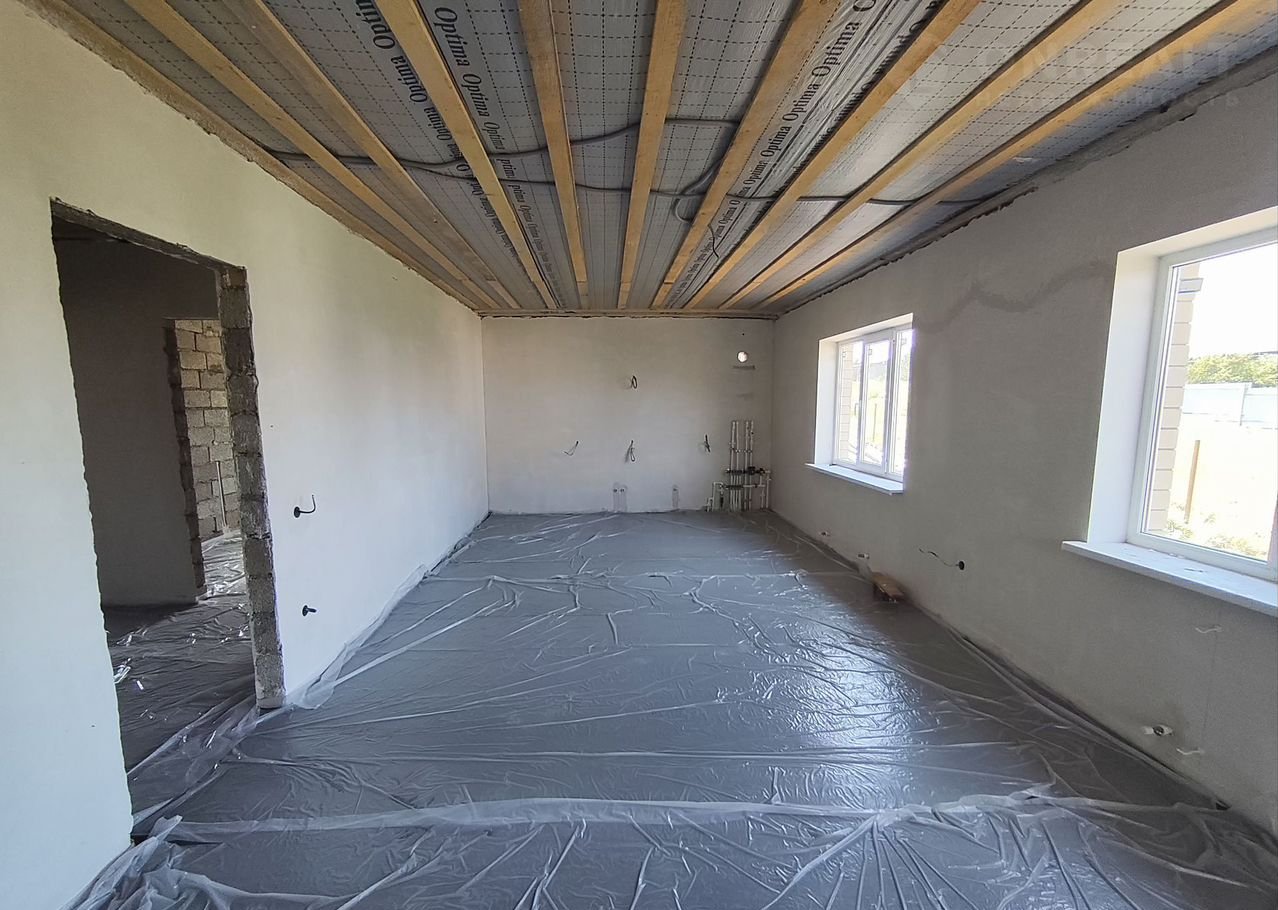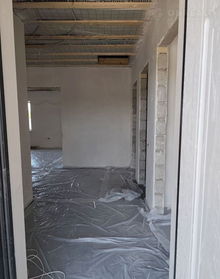 В доме просторная кухня-гостиная с выходом на террасу, три изолированные комнаты, гардеробная и раздельный санузел. Все помещения подготовлены к чистовой отделке: установлена система «Тёплый пол» (рабочая зона), котел-колонка и радиаторы отопления. Стяжка и штукатурка выполнены по маякам, что обеспечивает высокое качество работ.
