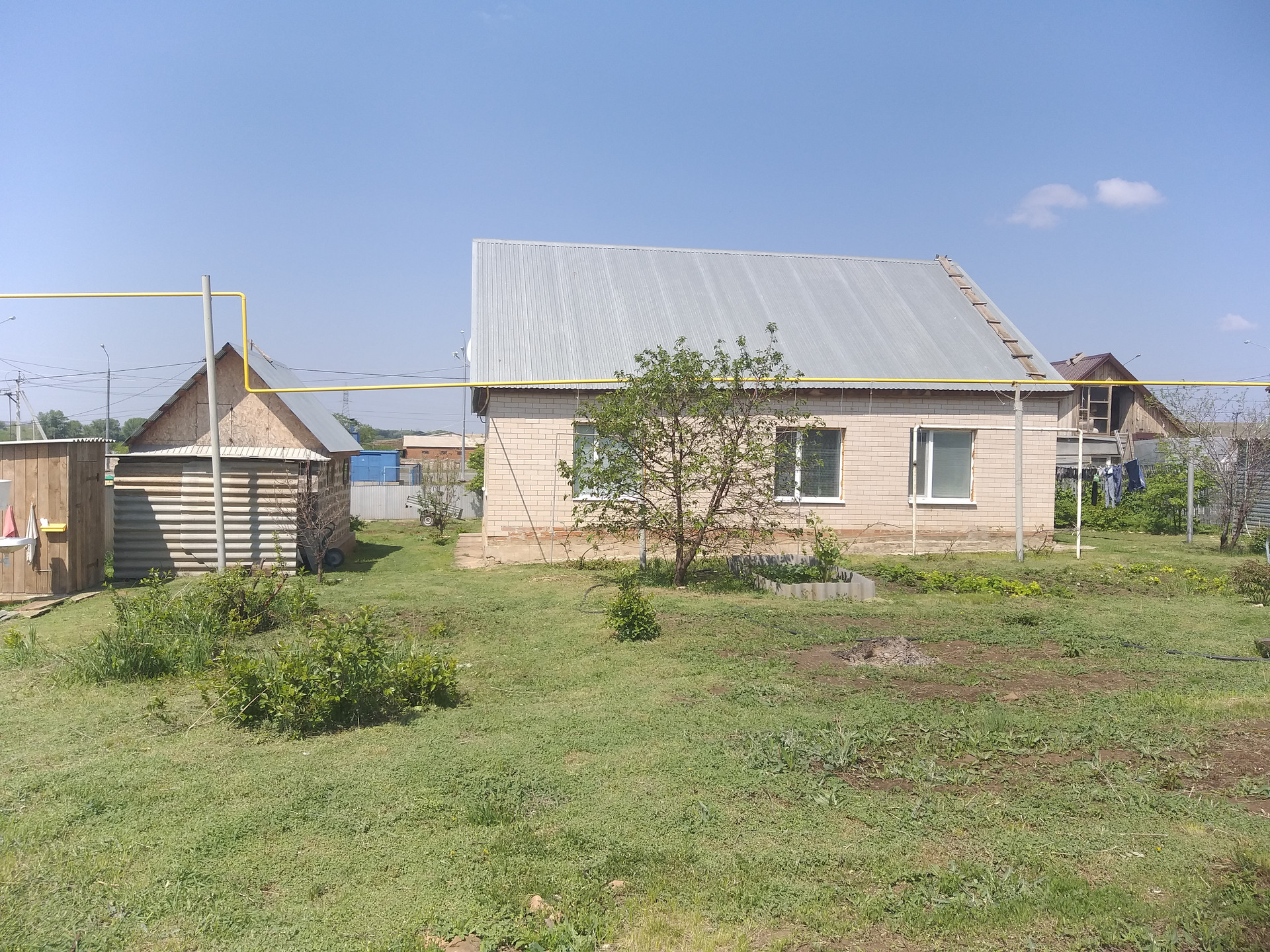 Участок ровный, правильной формы, имеются надворные постройки: гараж, баня (вода, слив, установлена печь), летняя кухня, сарай, кладовка, погреб (глубокий, сухой, обложен кирпичом с полками и удобной лестницей), имеется новый недостроенный дом площадью 40 кв.м.. Участок, огороженный забором из металл профиля.
