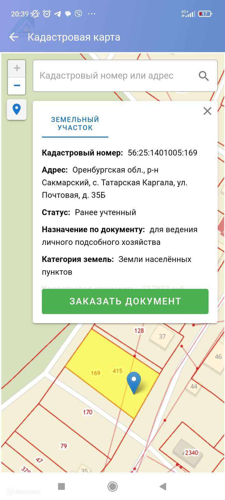 Участок под ИЖС, 17 сот. на продажу в селе Татарская Каргала, Почтовая улица