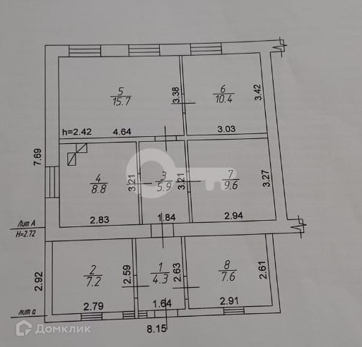 Высота потолков 2.8 м
