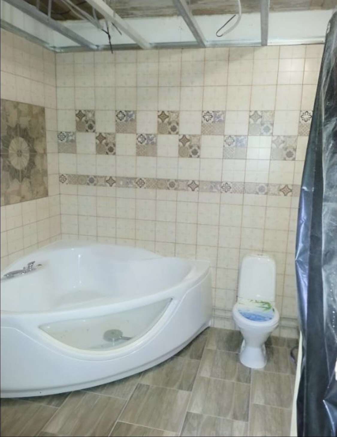 Дом-внутри обработанное , отшлифованное бревно , можно под отделку, можно под покраску. У нас просто стены натурального цвета. Пол-деревянный, под ламинат или линолеум на втором этаже, на первом-ламинат на кухне, дерево в комнате, плитка в ванной. В ванной плиткой выложены стены, ванна, унитаз, сделана разводка под воду.