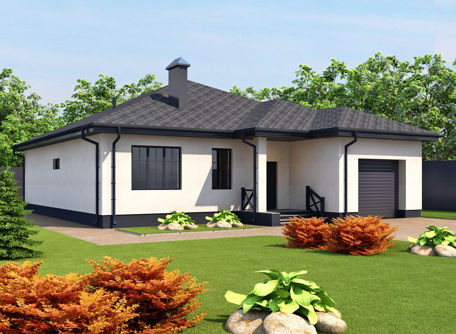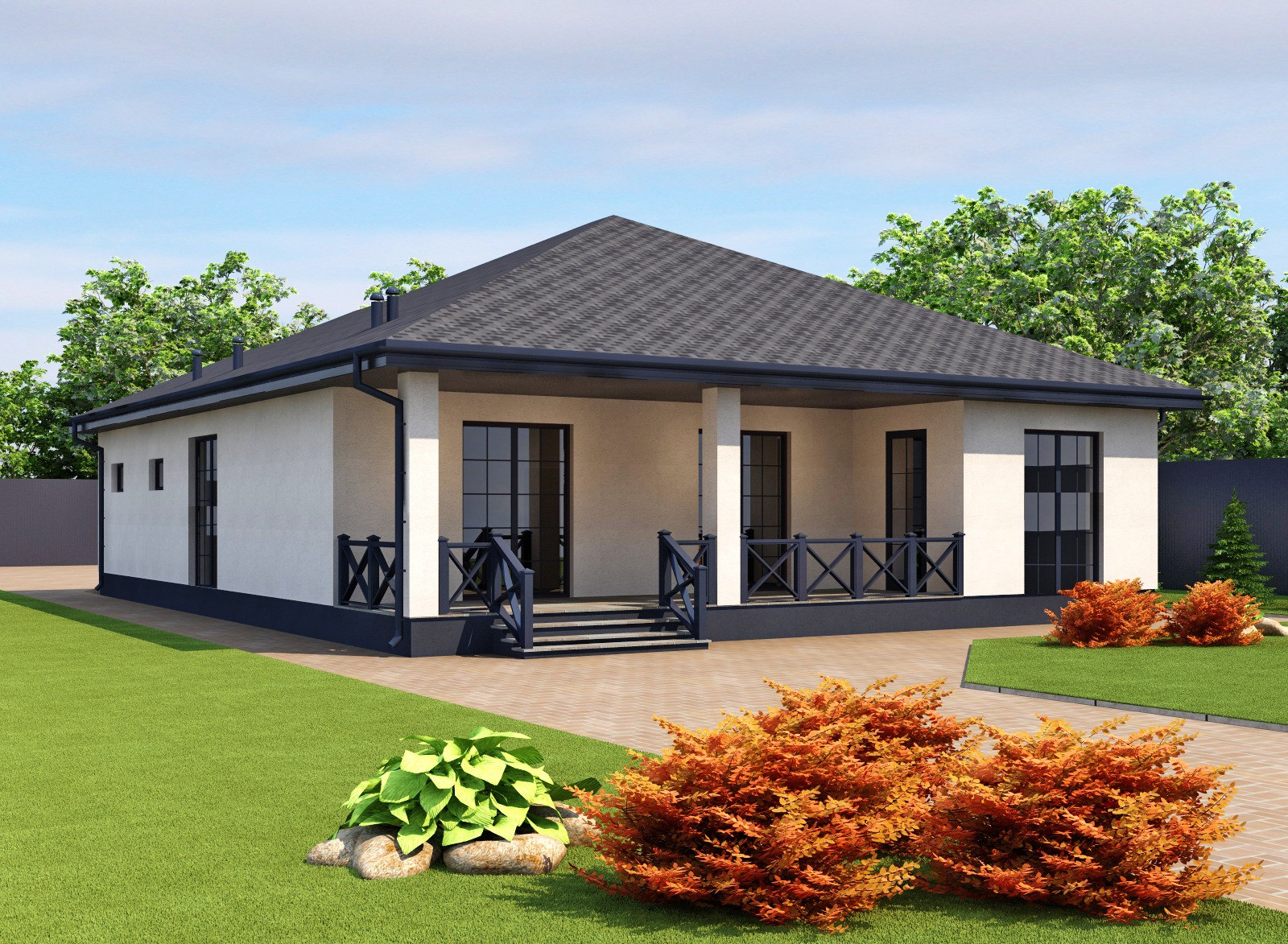 Участок ровный, огорожен забором, благоустроен и засажен газоном и декоративными растениями и кустарниками. Установлена система автополива по всей площади. На участке есть большая беседка для отдыха, место для бассейна и хоз. постройка.