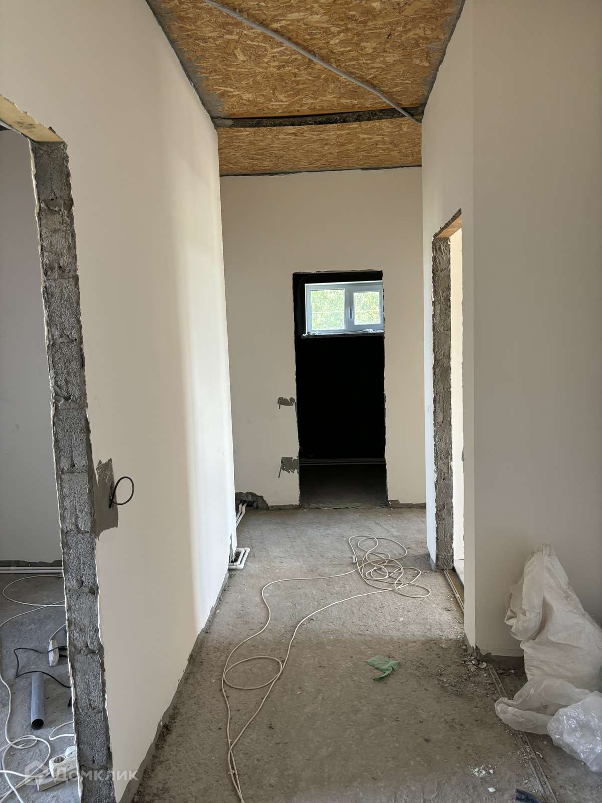 В доме две спальни, кухня-гостиная с выходом на террасу и задний двор, ванная комната, холл, прихожая. Цена указана за чистовую отделку, т.е:разводка электричества, отопления установка котла и радиаторов, трёхкамерные ПВХ окна, система тёплый пол по всему дому, входные двери. Газ, электричество и вода в доме, канализация -септик 3 кольца.