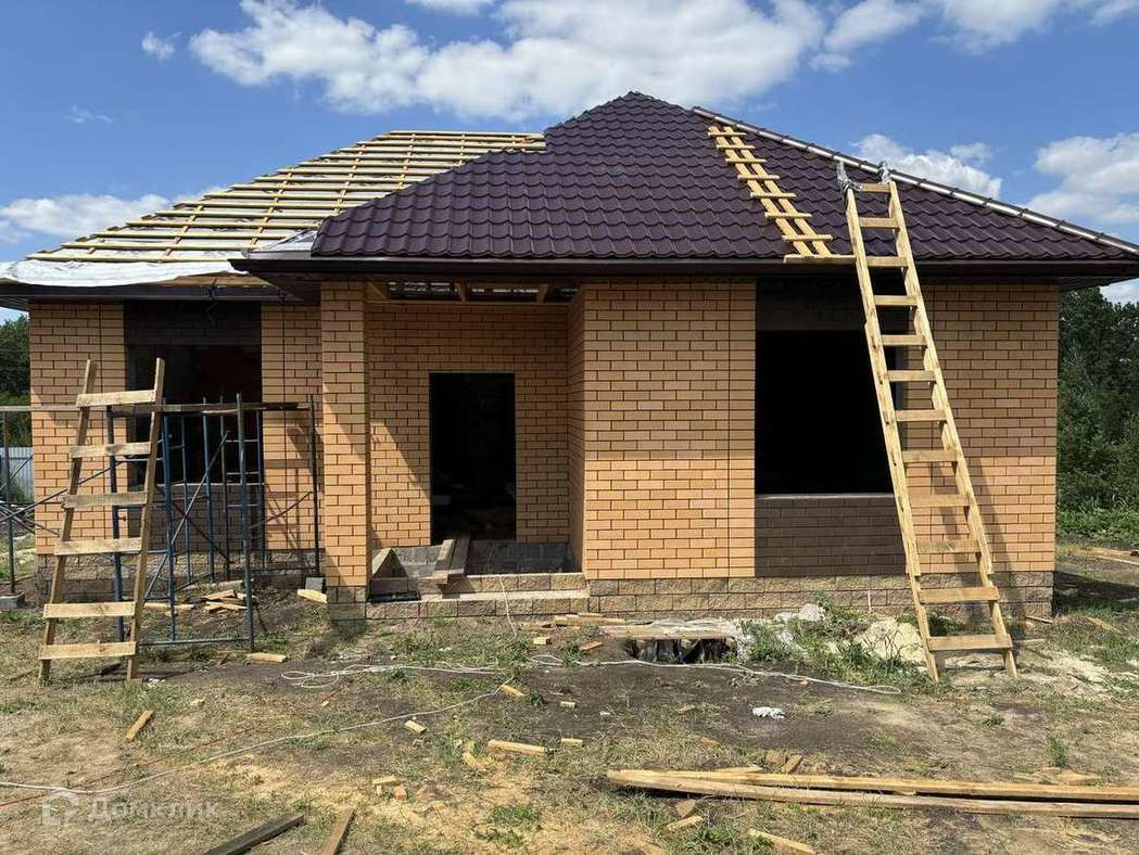 Дом построен из керамзитоблоков на ленточном армированном фундаменте(100см), утеплён, облицован керамическим кирпичом, крыша-металлочерепица.
