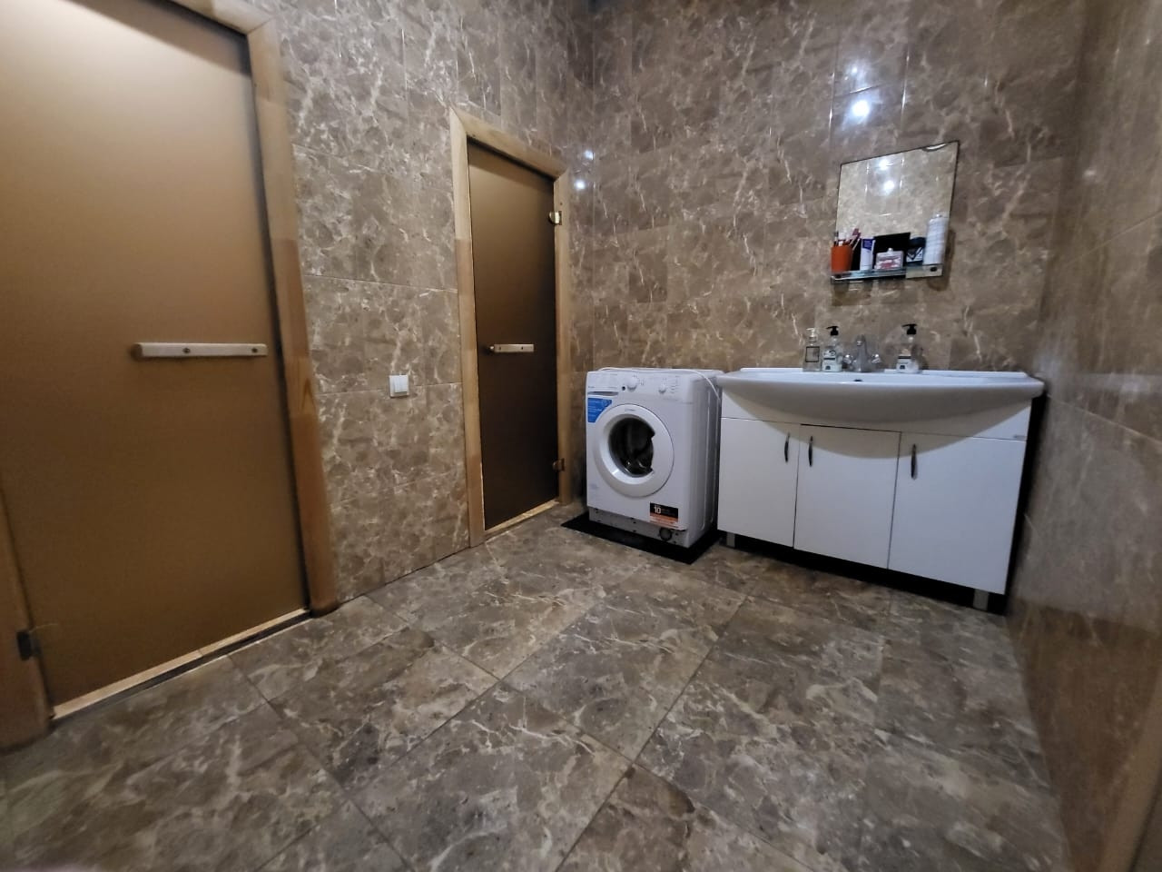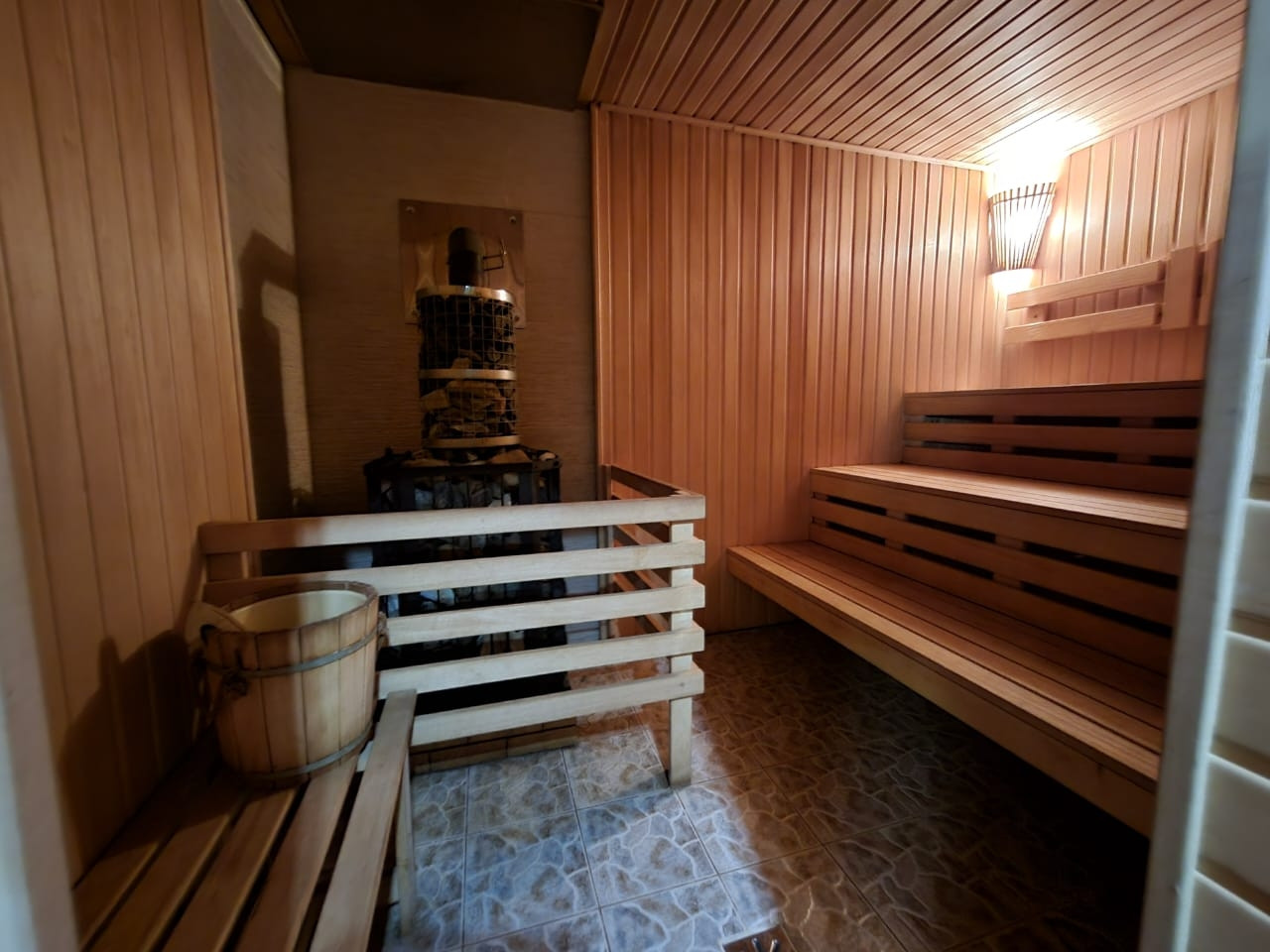 На данный момент в доме есть: жилая комната -24,5 кв.м., кухня -18,3 кв.м., сан.узлы, сауна в доме -7,3 кв.м., душ -1,8 кв.м., сан.уз.-1,8 кв.м..теплый пол - везде где плитка на полу.
