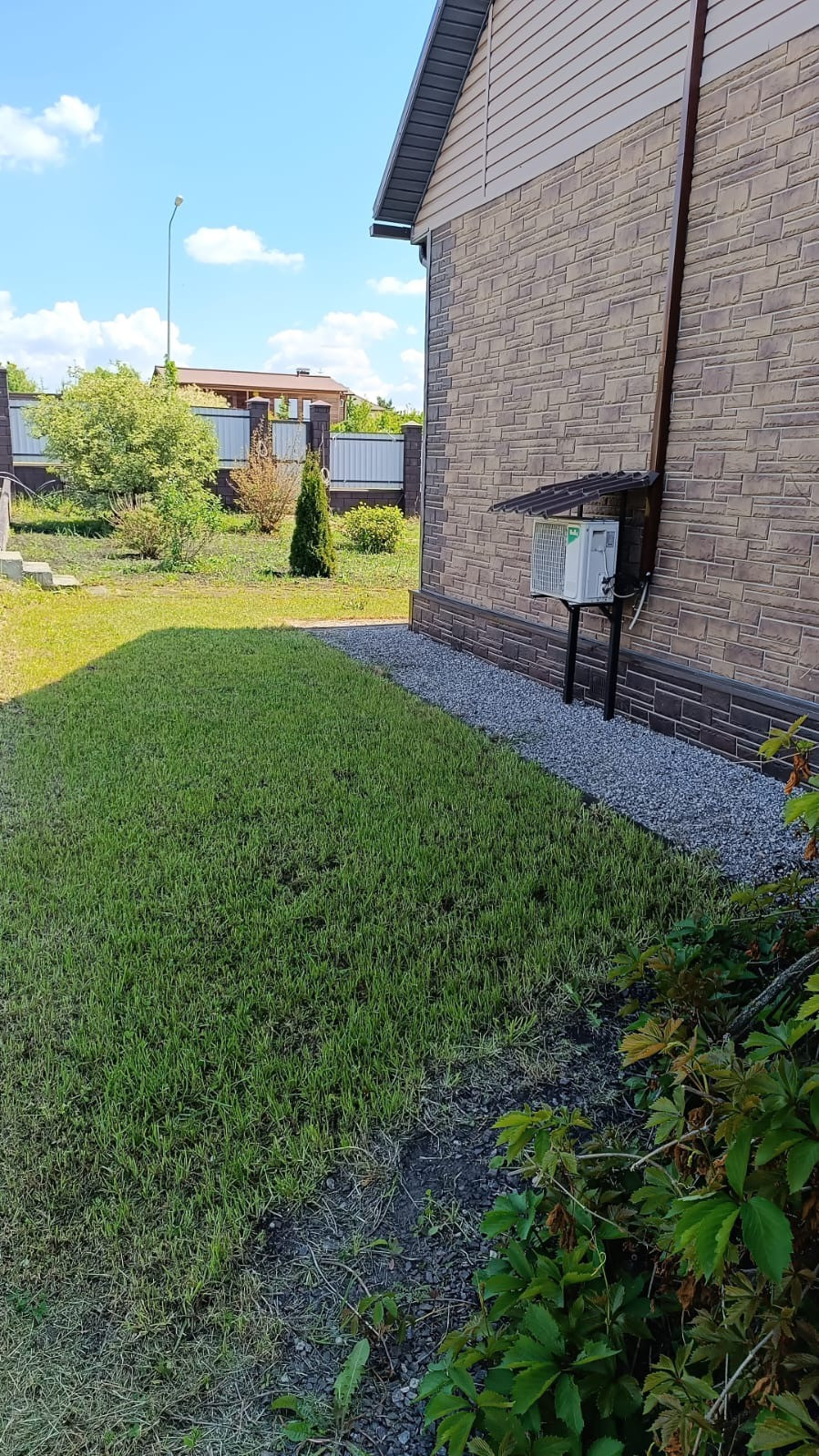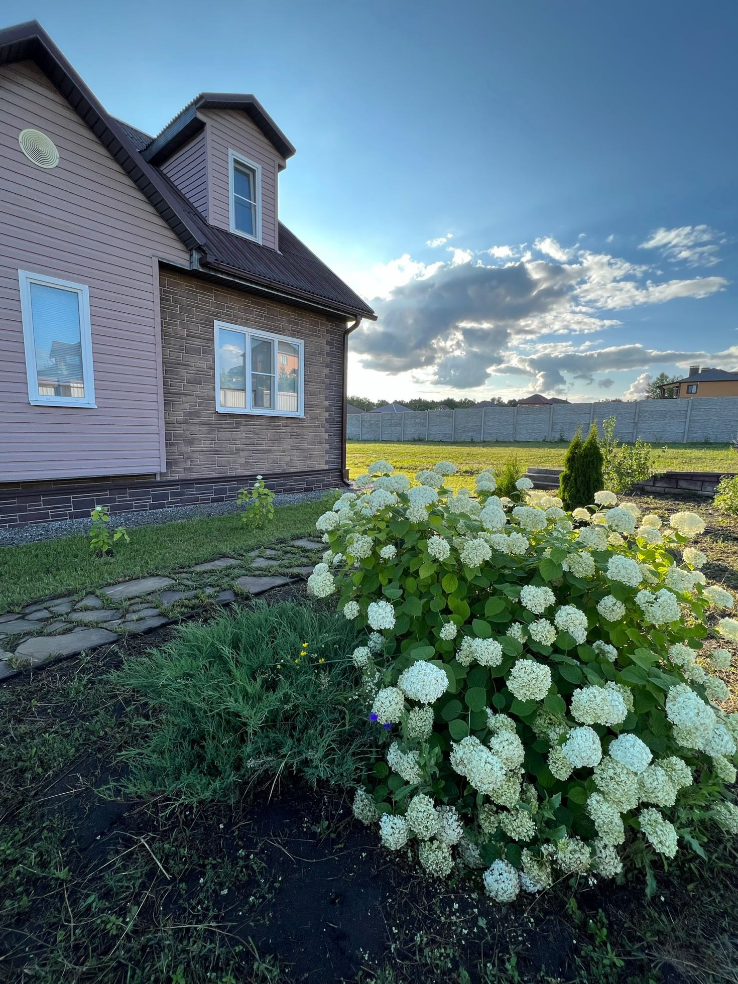 Фасад декоративно отделан цокольным сайдингом.