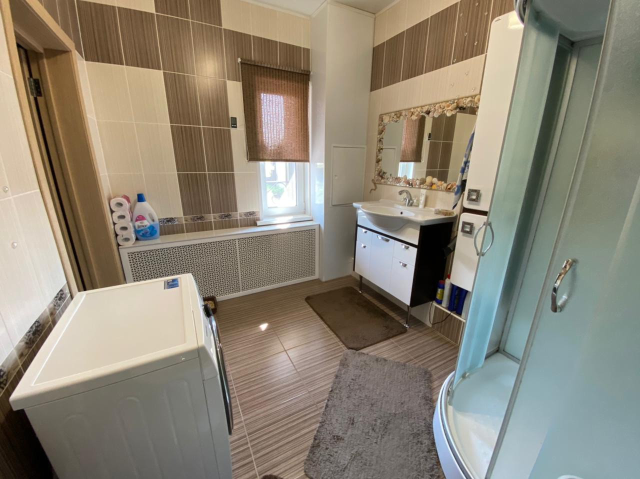 2 сан.узла выложены кафелем с установленной сантехникой. В спальных комнатах установлены дополнительные мансардные окна, что придает определенный шарм. В одной из спален кондиционер. Крыша дома накрыта ондулином, с соблюдением всех требований, как технических так и атмосферных.