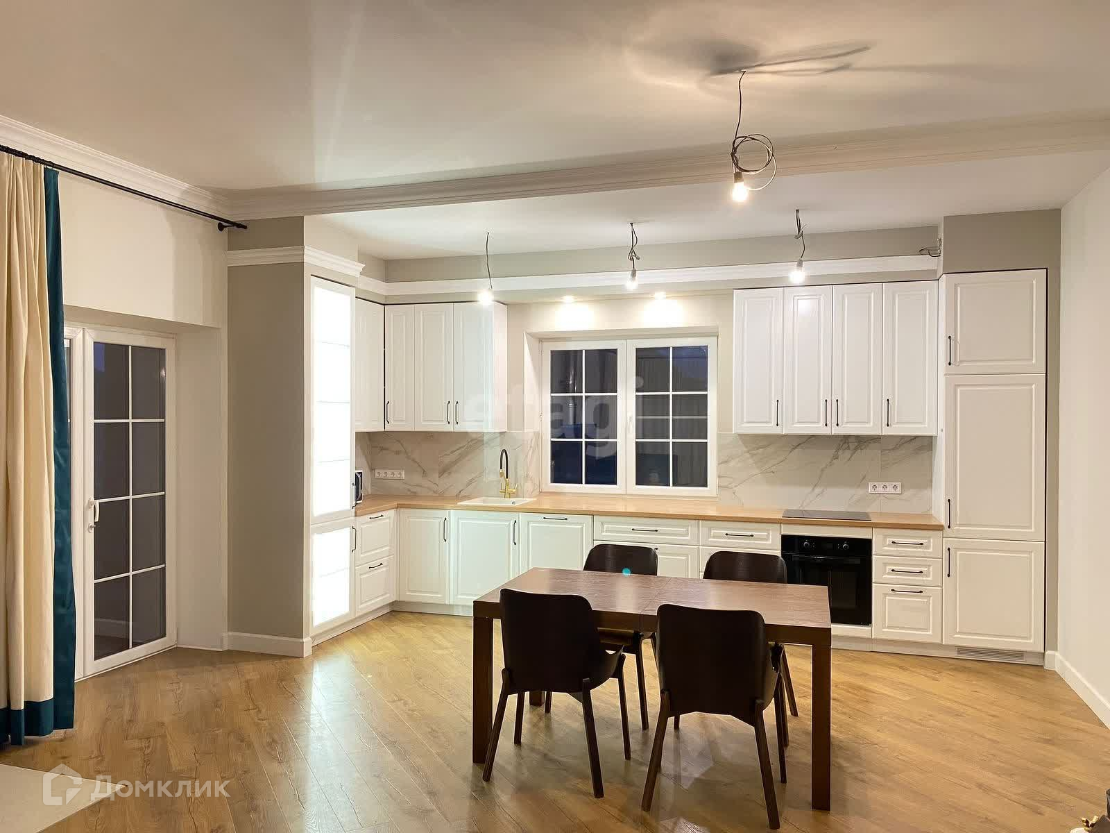 - Просторная кухня-гостиная с камином, где вы сможете проводить уютные вечера с близкими. - Пять светлых спален, обеспечивающих уединение и комфорт для каждого члена семьи.