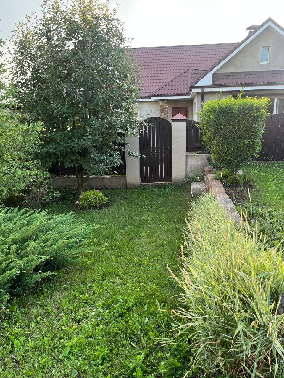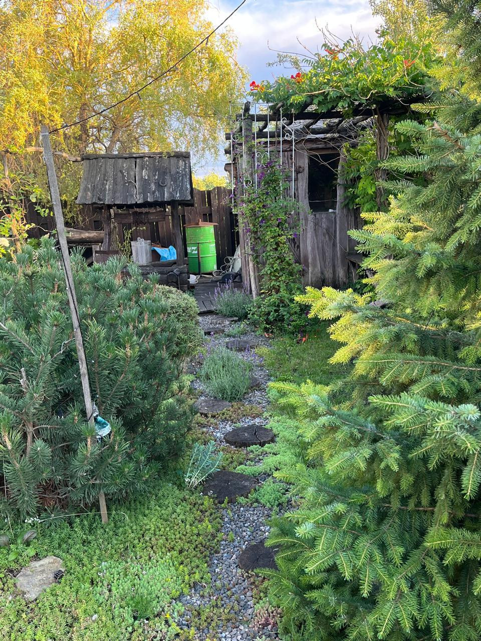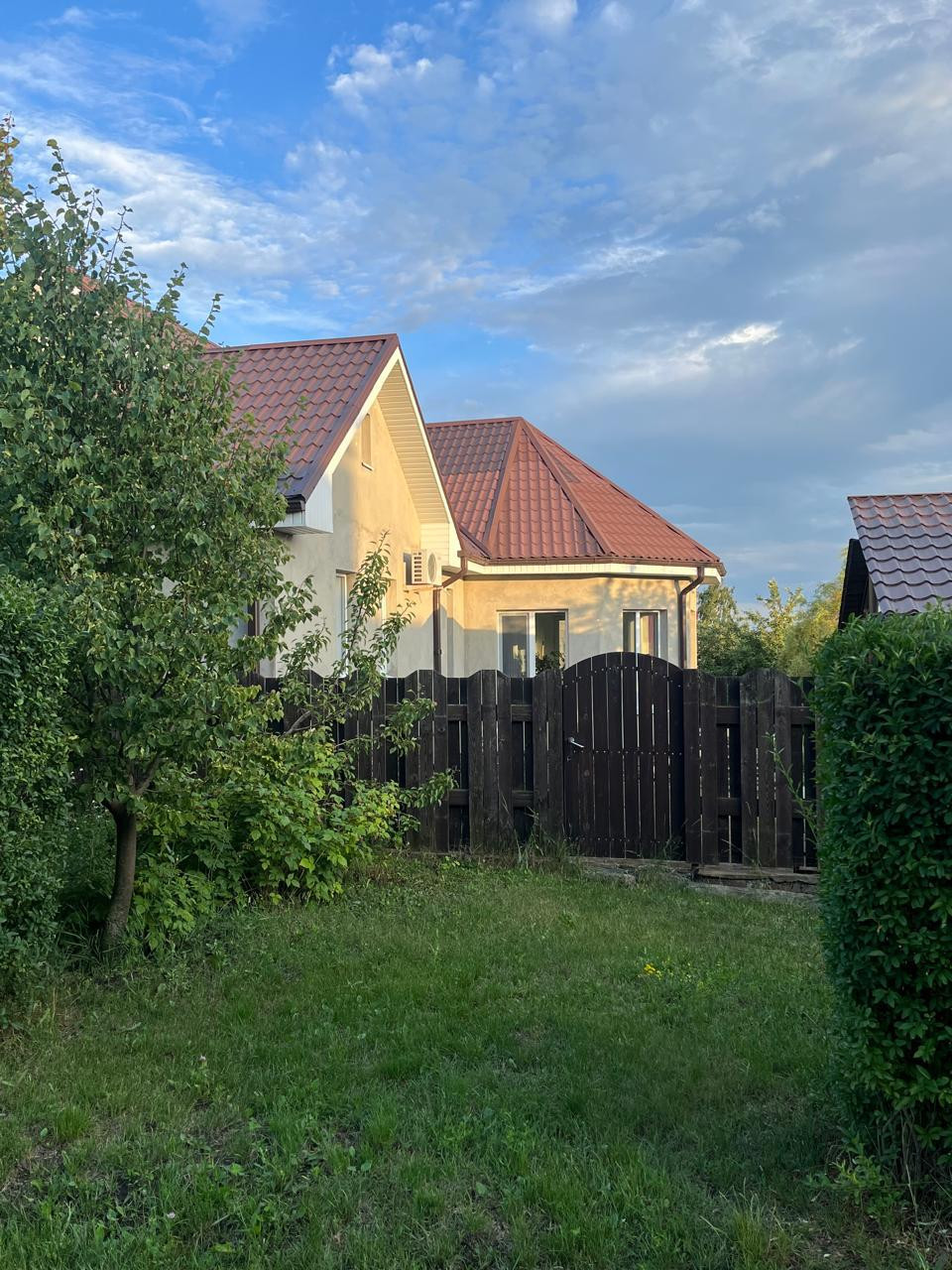 За живой изгородью (расположенной за забором) находится плодовый сад .Забор по всему периметру участка ,выполнен из дерева.Уютная  деревянная беседка и очаг созданы для отдыха.Большая теплица.Летний душ.Отдельно стоящий гараж -30 кВ.м. и хозяйственное помещение 30 кВ.. с отделкой.В шаговой доступности остановка.