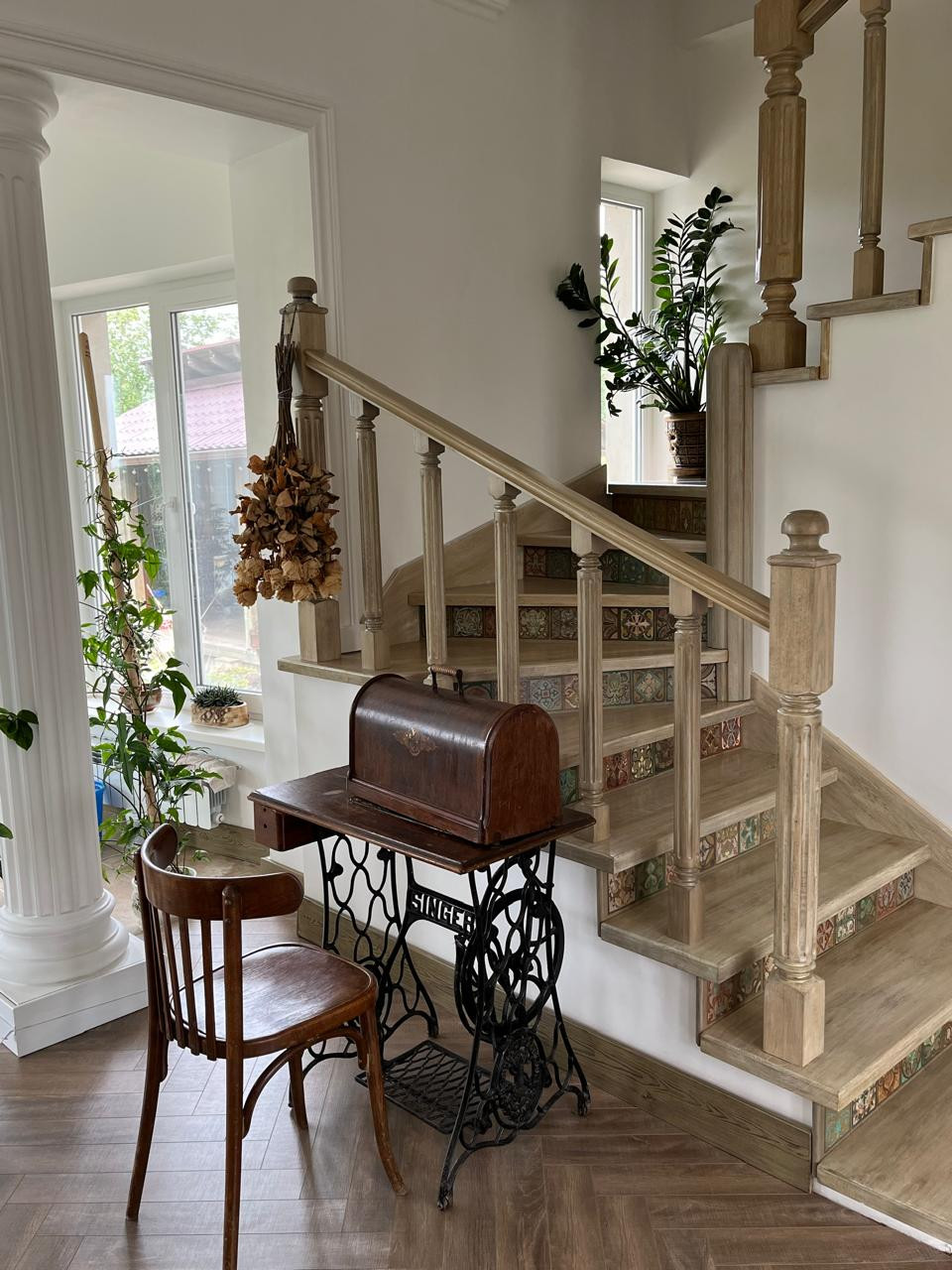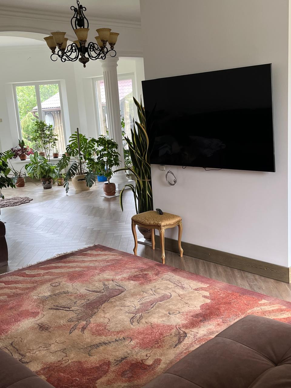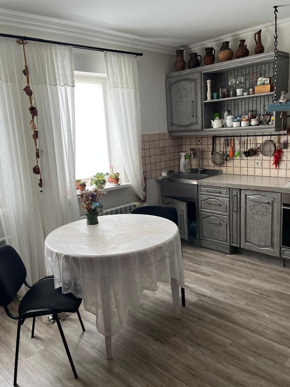 Комнаты просторные и светлые.Ремонту 1 год.Высота потолков варьируется от 2.7м до 3,2м.Панорамные окна.Система теплый пол в местах ,где расположен кафель.Два санузла.Дубовая лестница.
