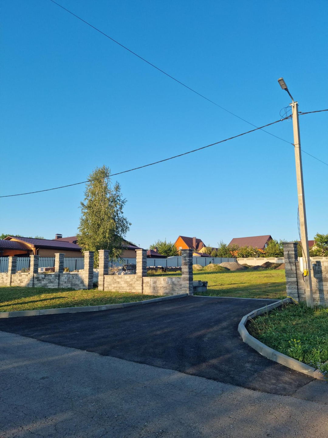Участок ровный, полностью огорожен, лицевая сторона из блока производства Арбет. На участке заведены и подключены коммуникации: свет газ.
