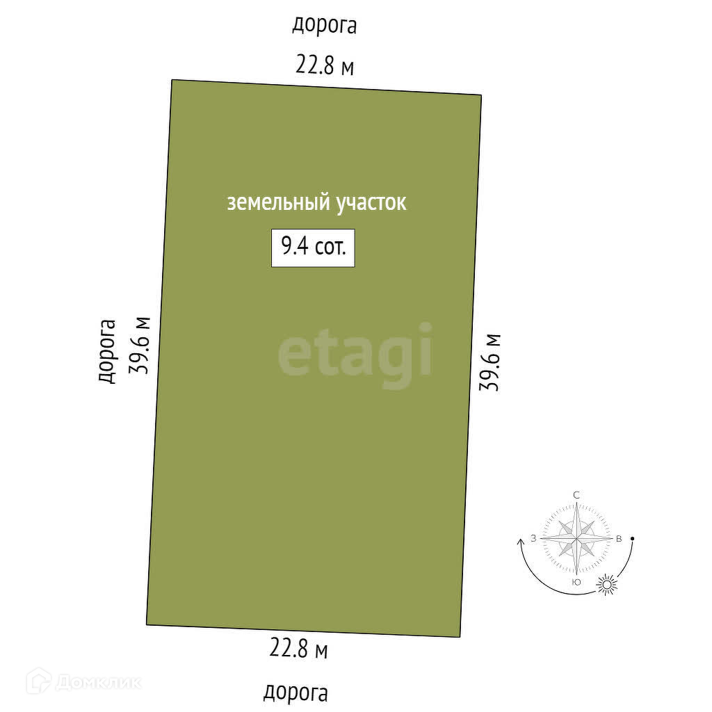 Площадь участка 9.4 сот.