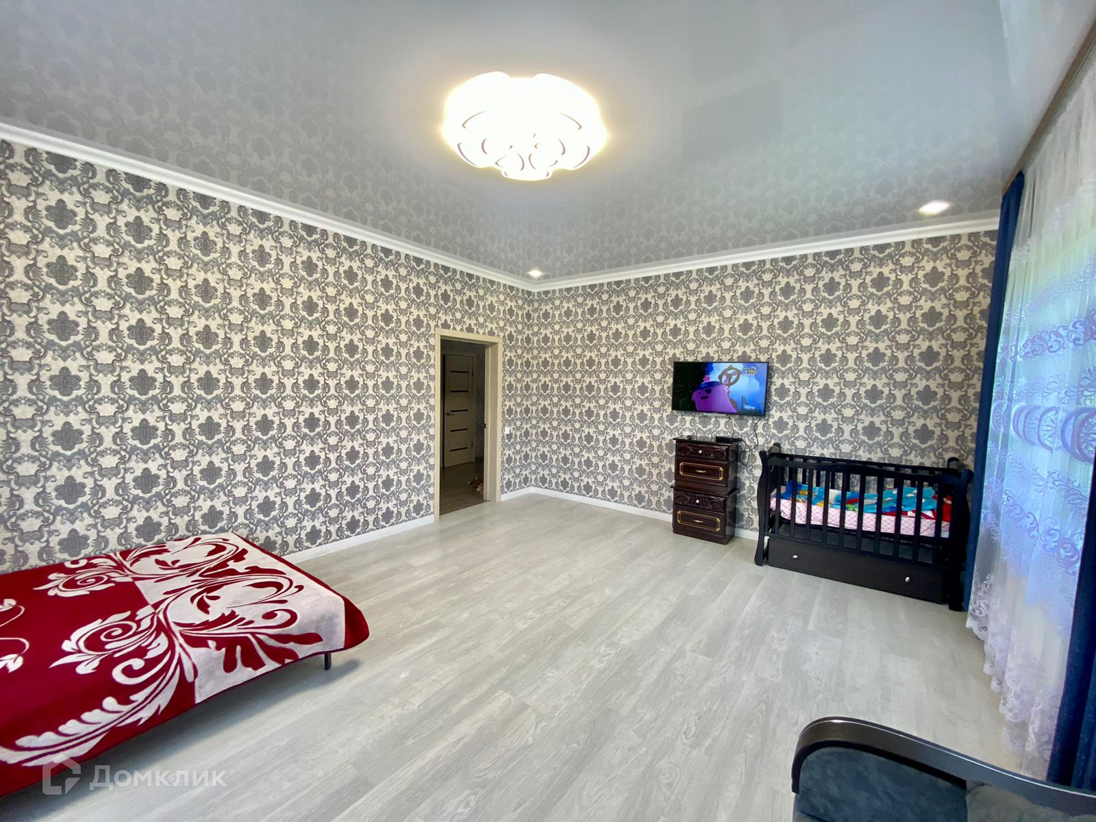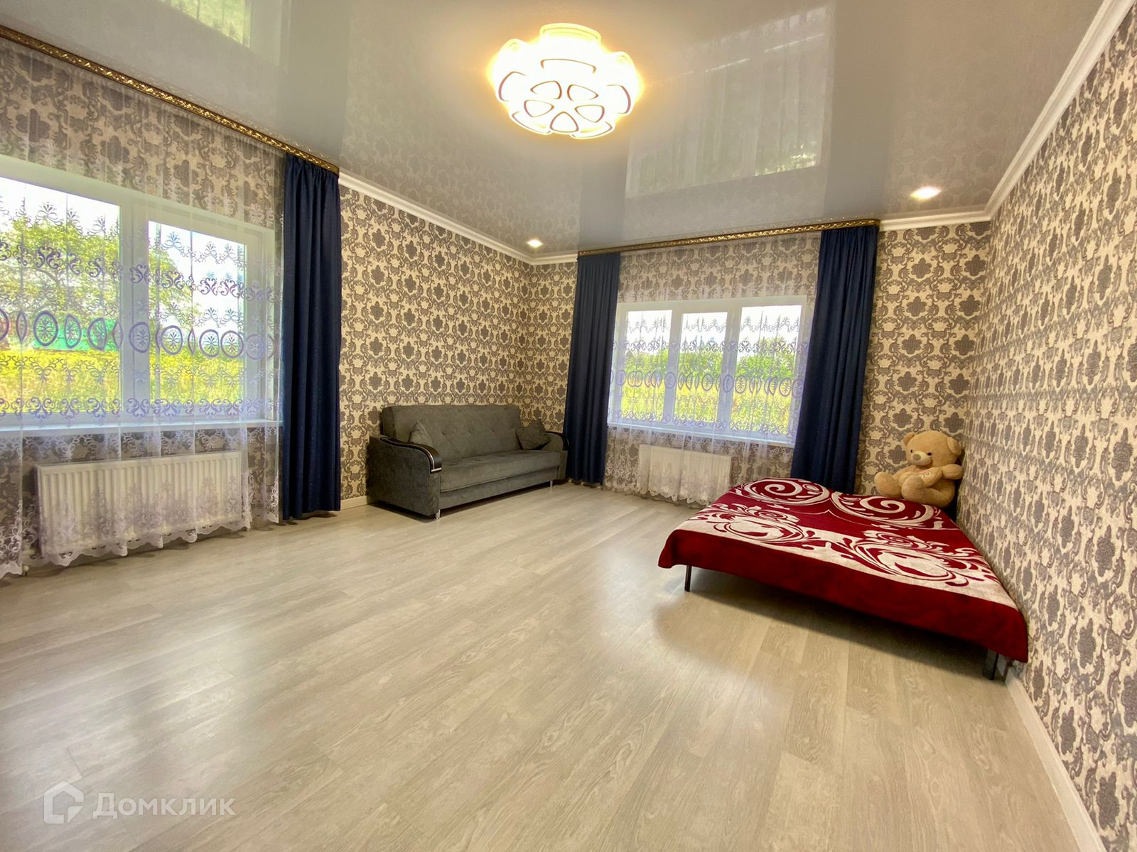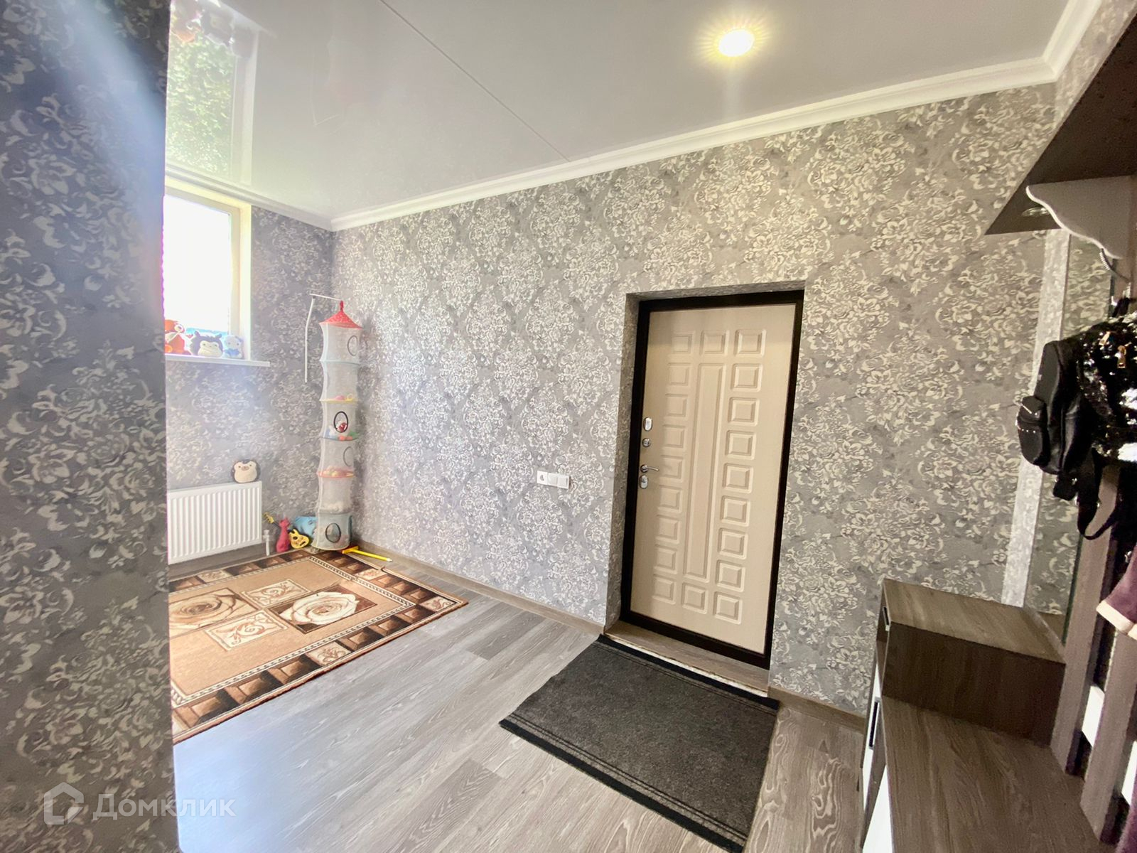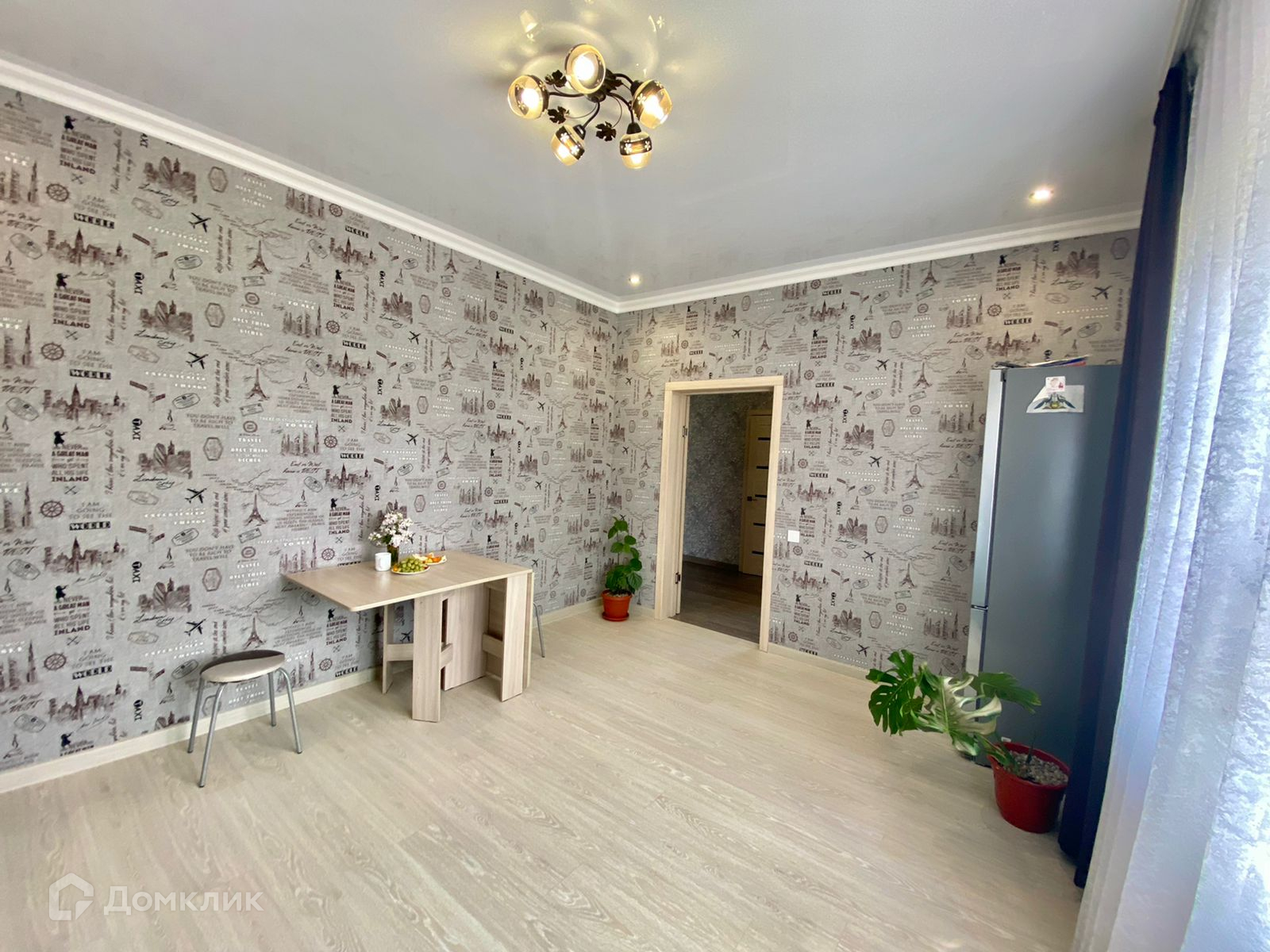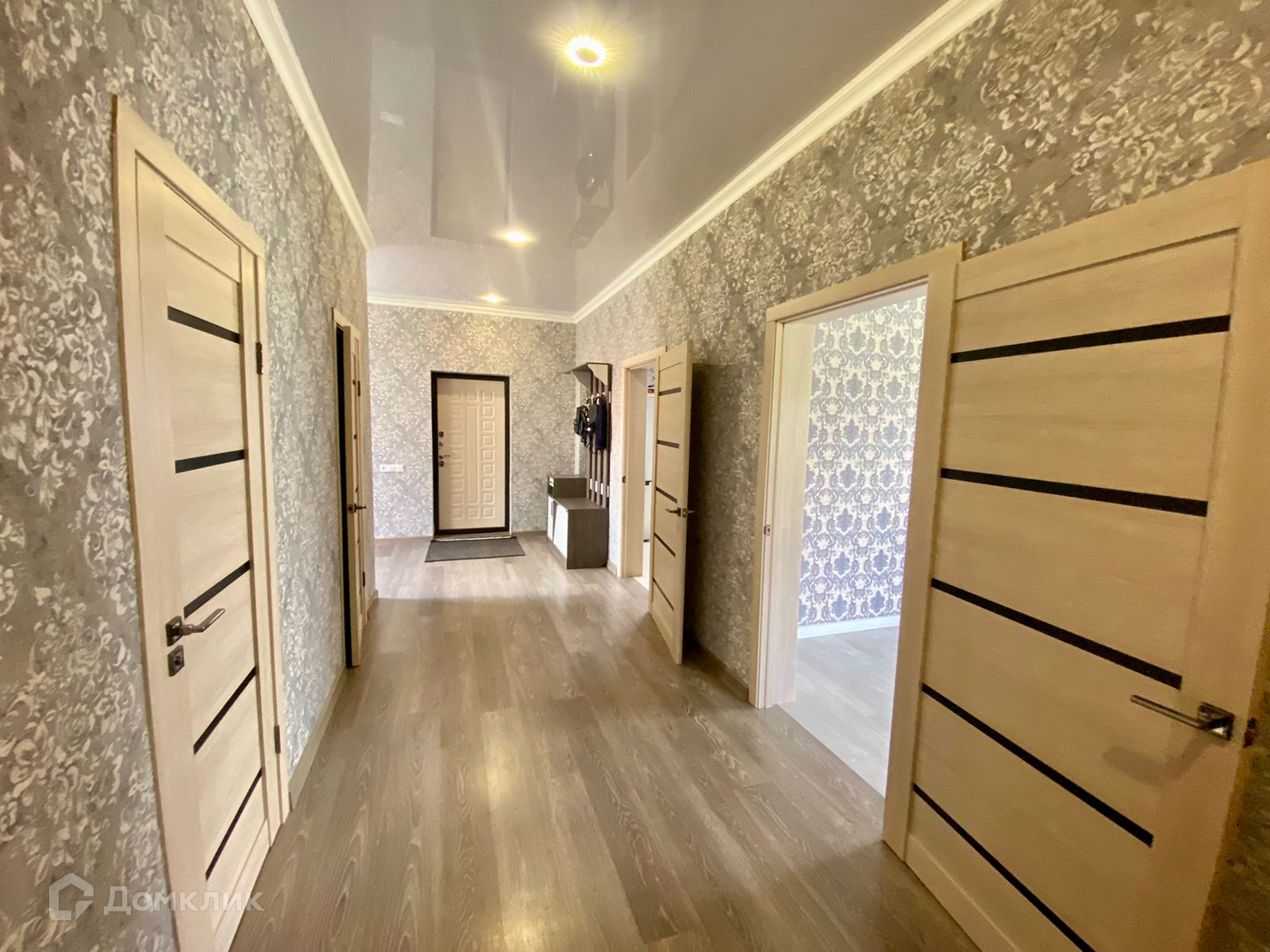 Внутренняя отделка чистовая: на полу ламнат, потолок натяжной, стены оклеены обоями.