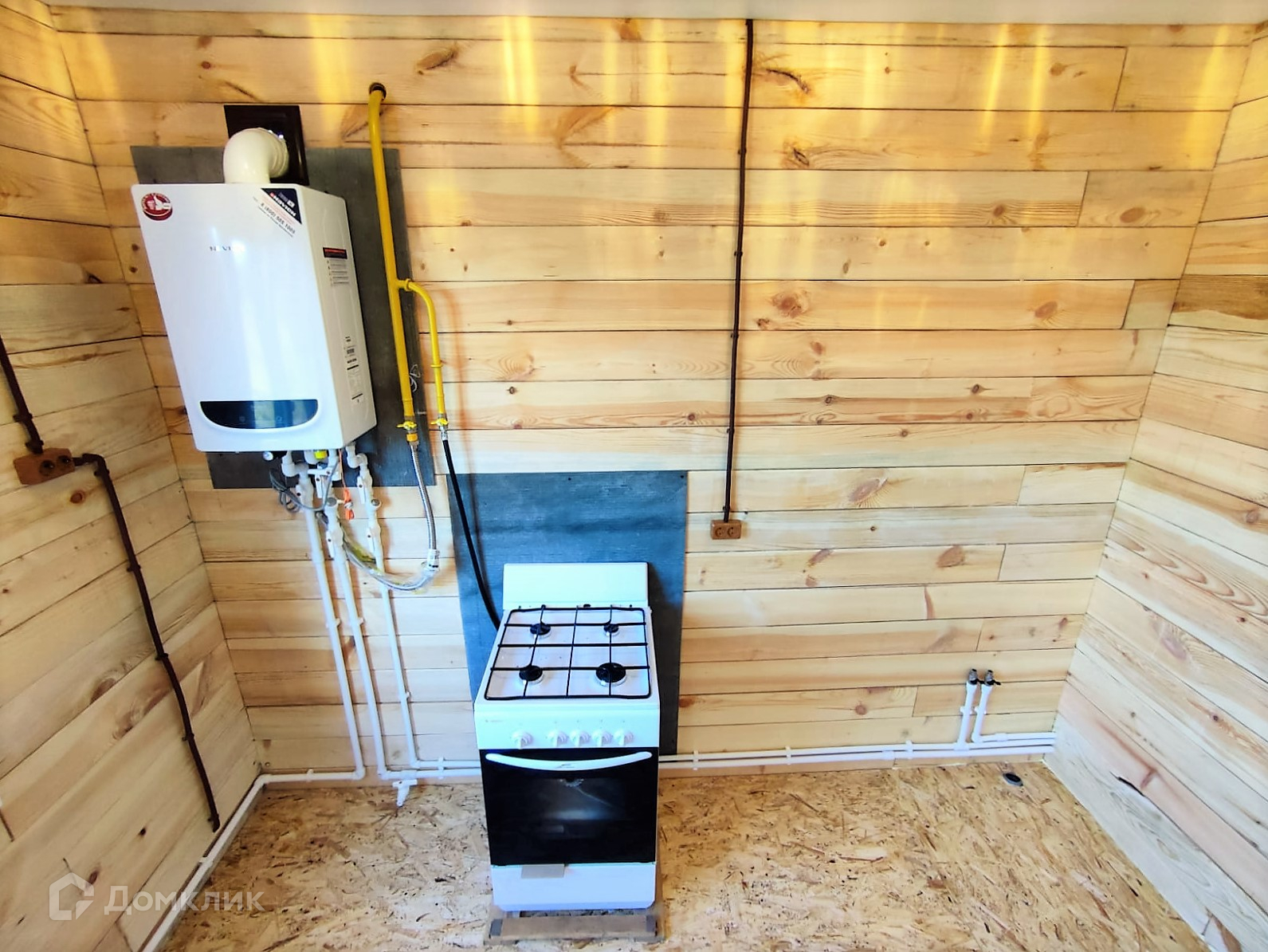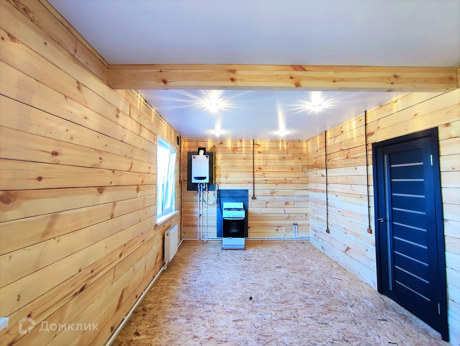 В доме сделана получистовая отделка- стены строганый брус, обработанный антисептиком,
