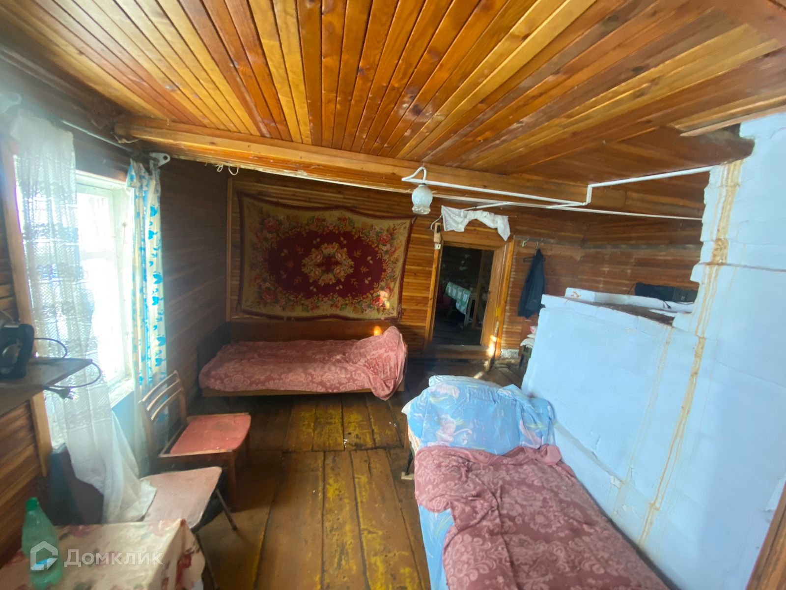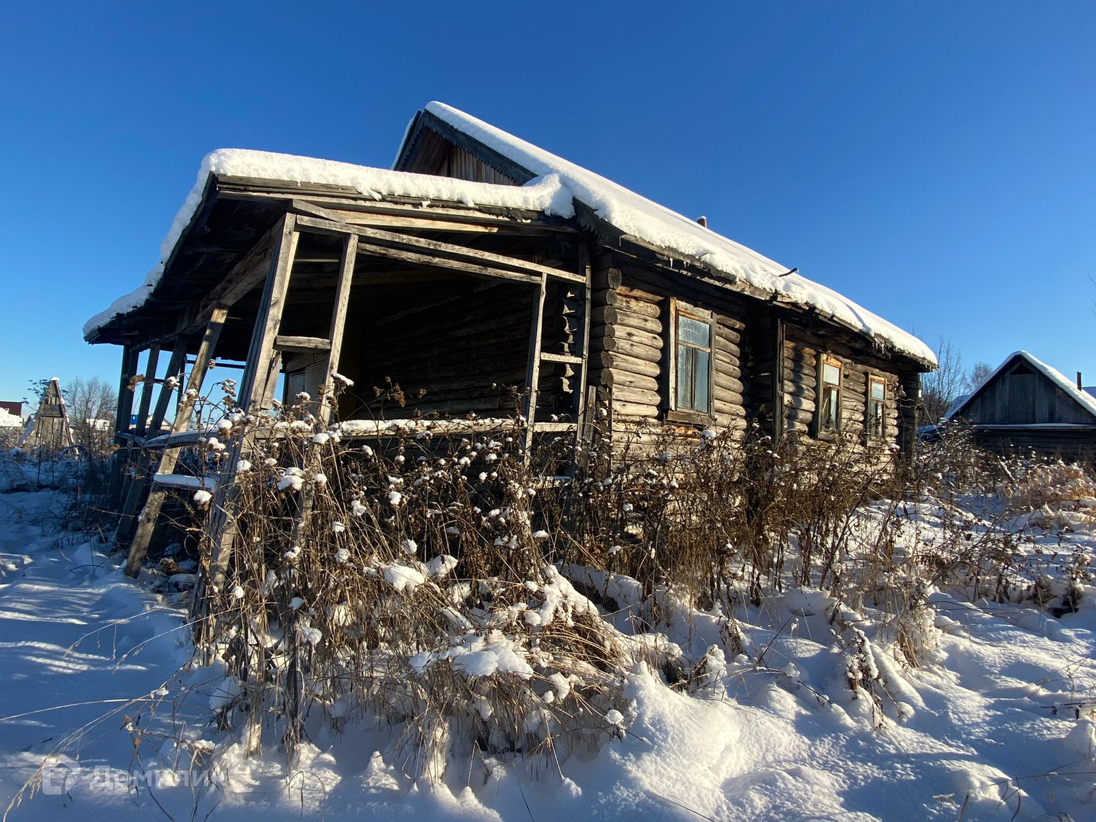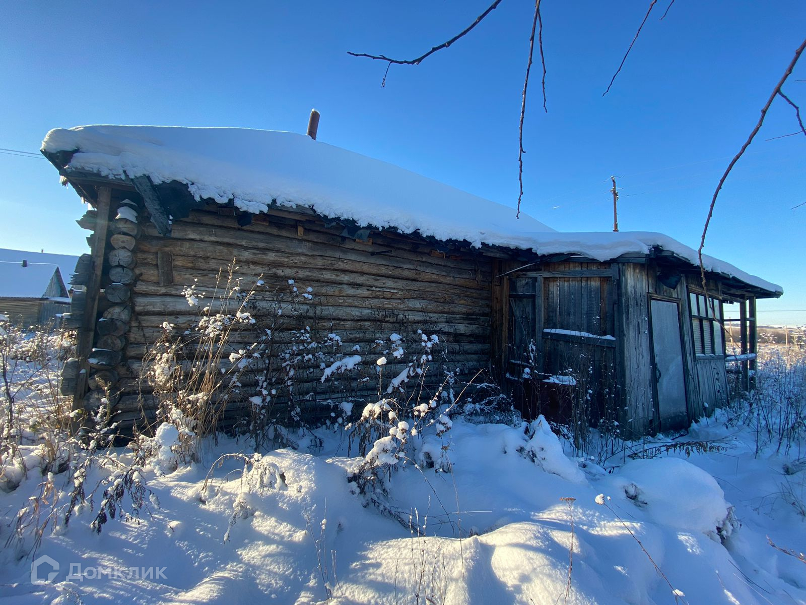 Дом построен из бревна.